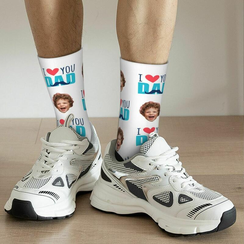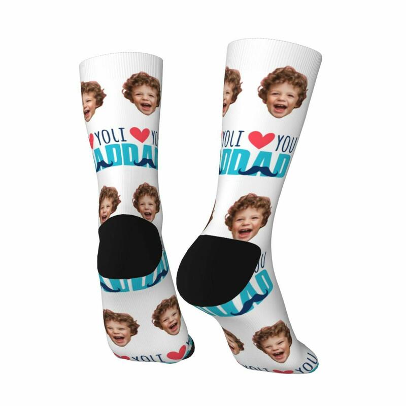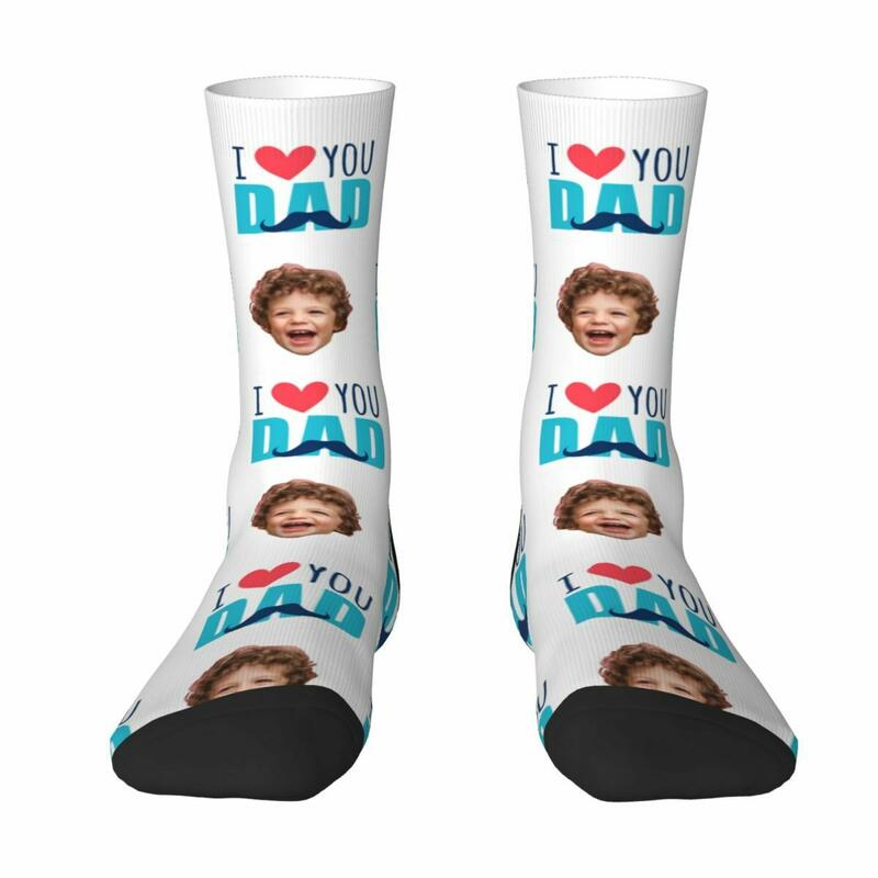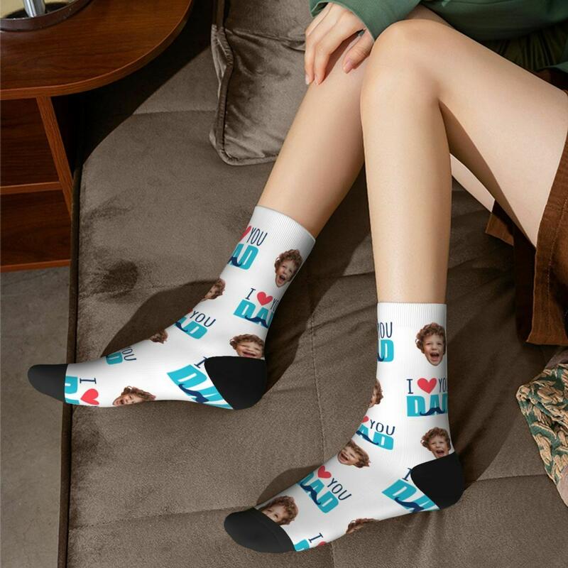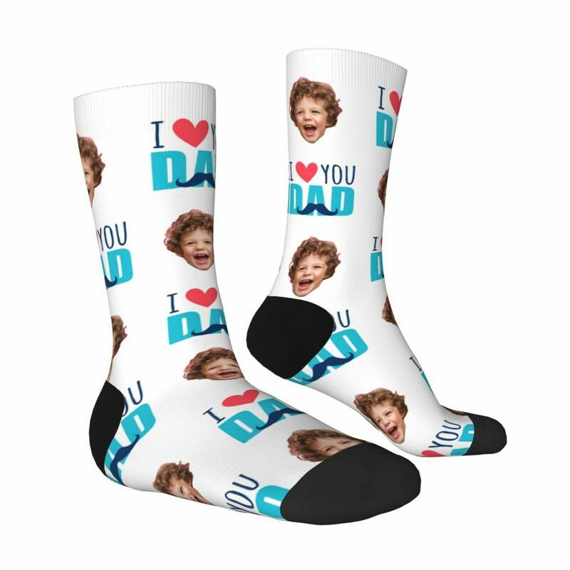 Chaussettes à visages personnalisées « I LOVE DADDY » Chaussettes mi-mollet Cadeau Fête des Pères