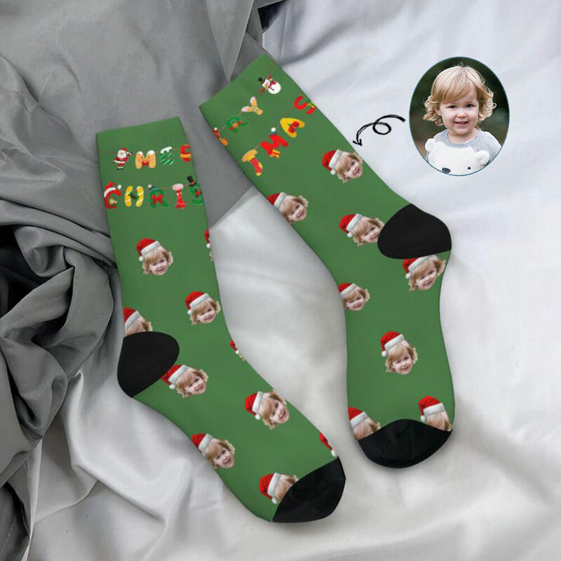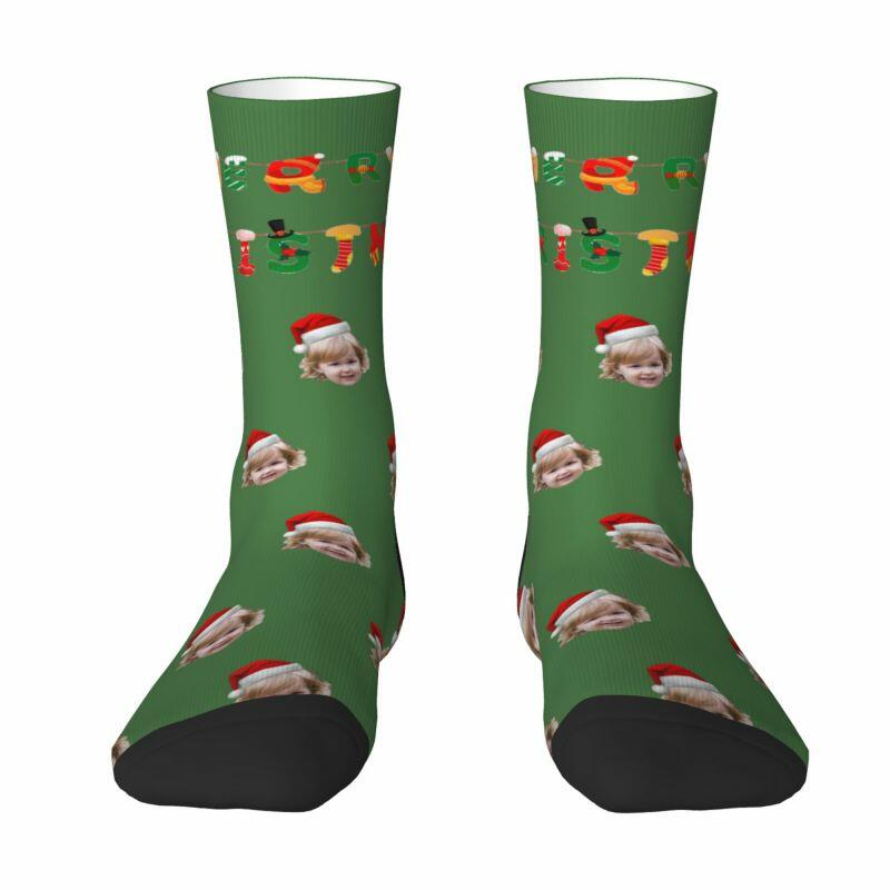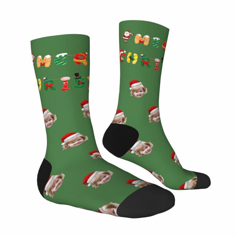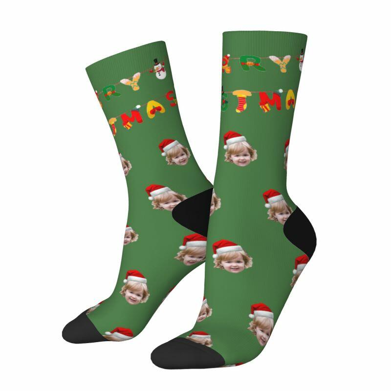 Chaussettes personnalisées « Joyeux Noël » Ajoutez la photo de votre enfant comme cadeau pour la famille