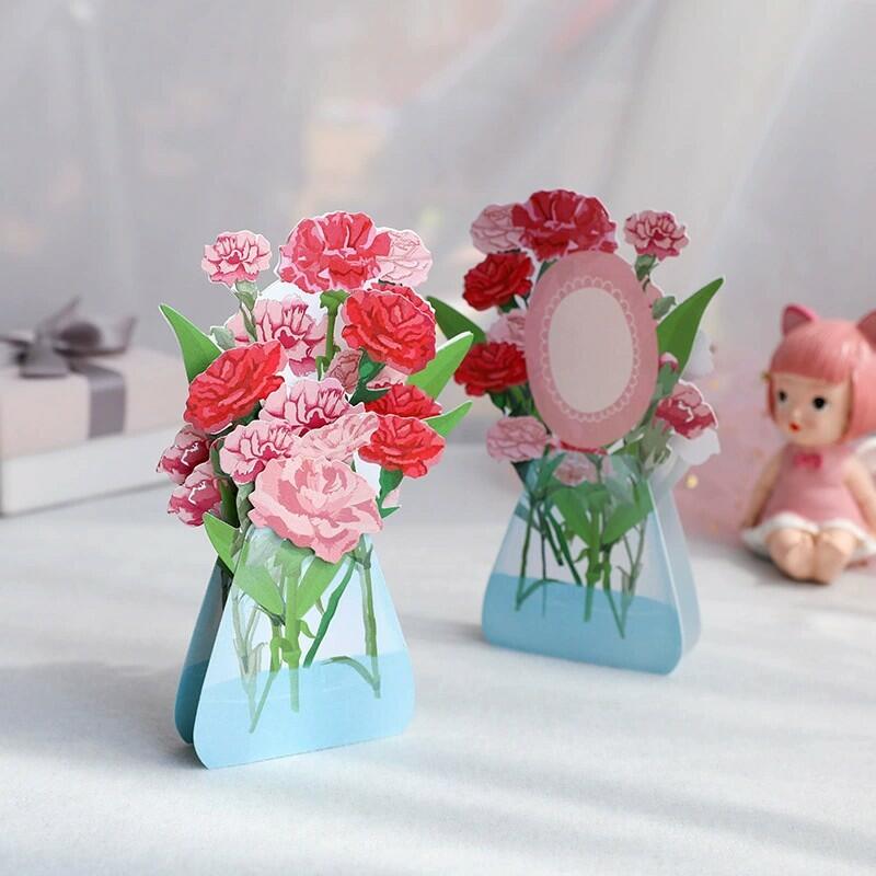 Carte Pop Up 3D Vase d'œillets fleuris Cadeau exquis pour la Fête des Mères