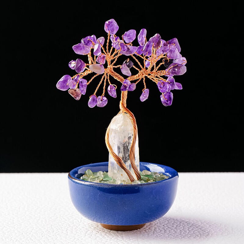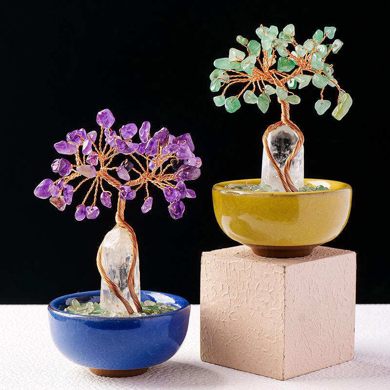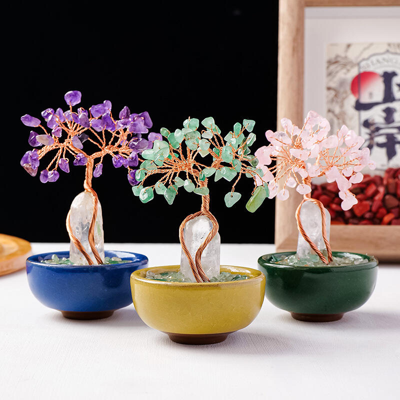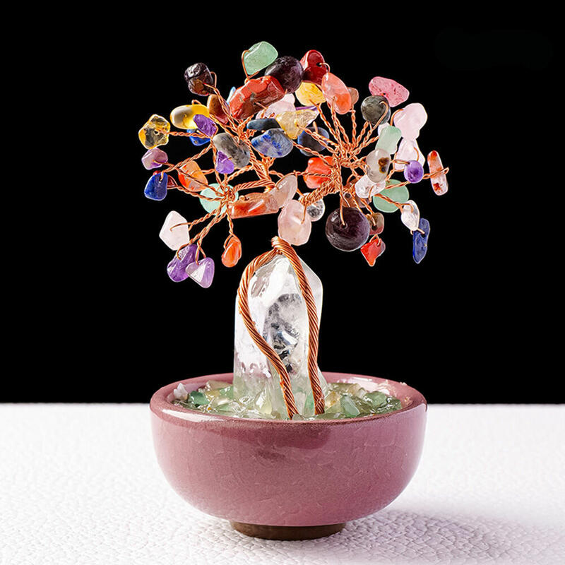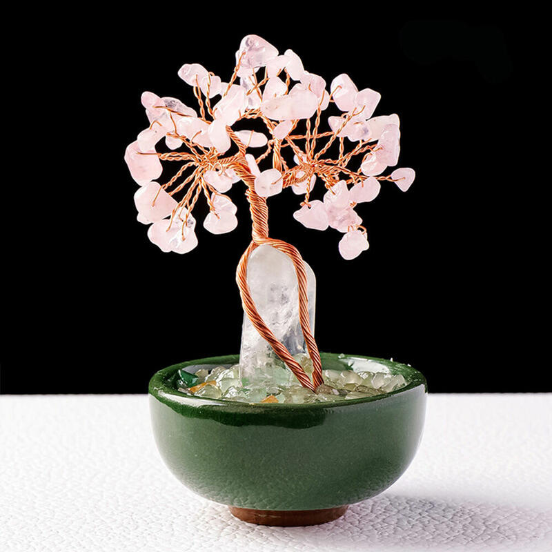 Arbre de Cristal Cylindrique Base Tasse à Thé Tissé à la Main Arbre de la Chance Ornements pour les Amis