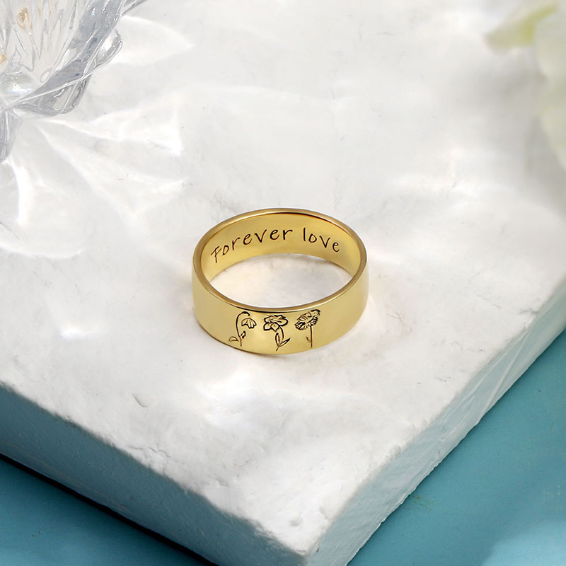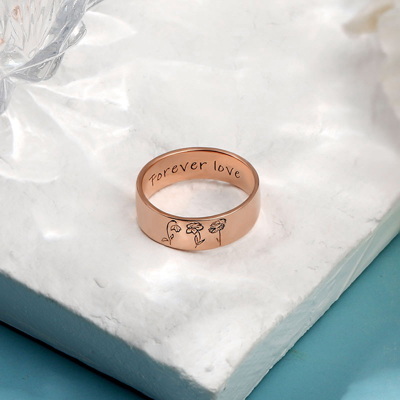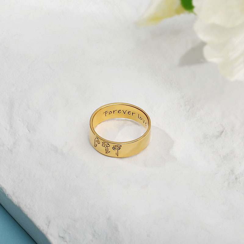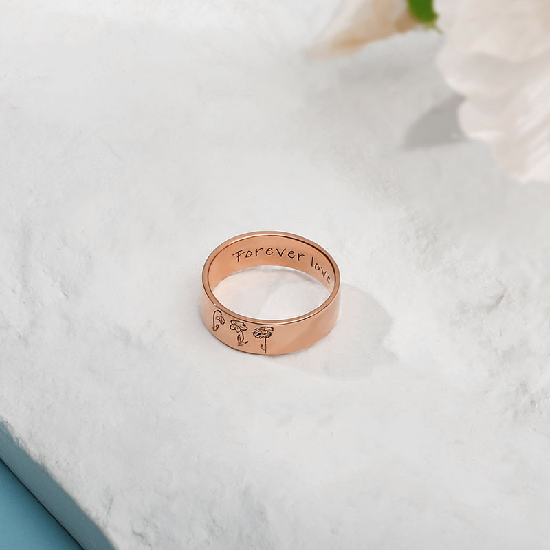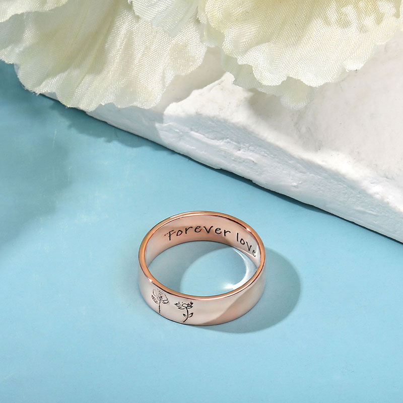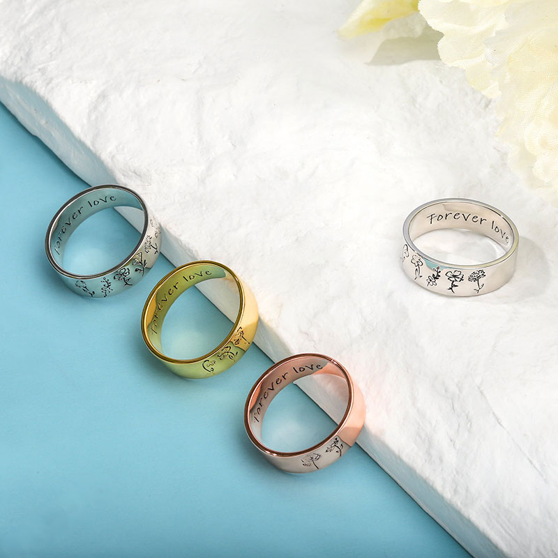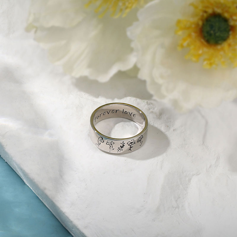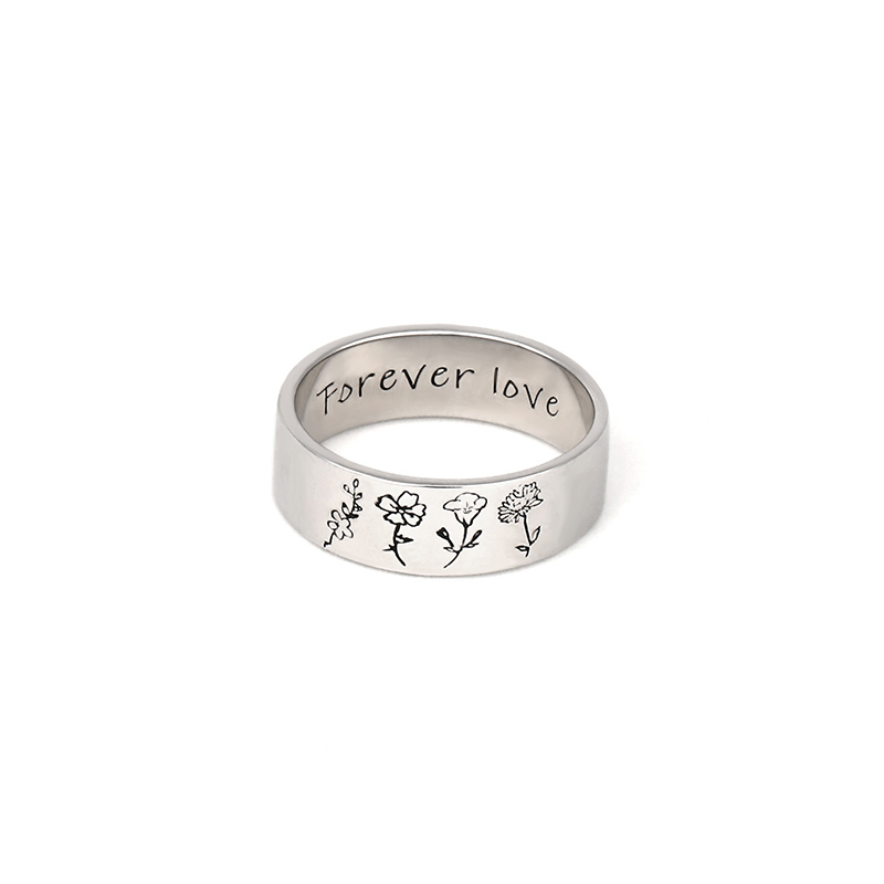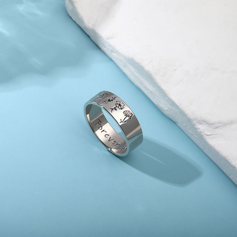Bague Fleur de Naissance Personnalisée avec Texte Argent