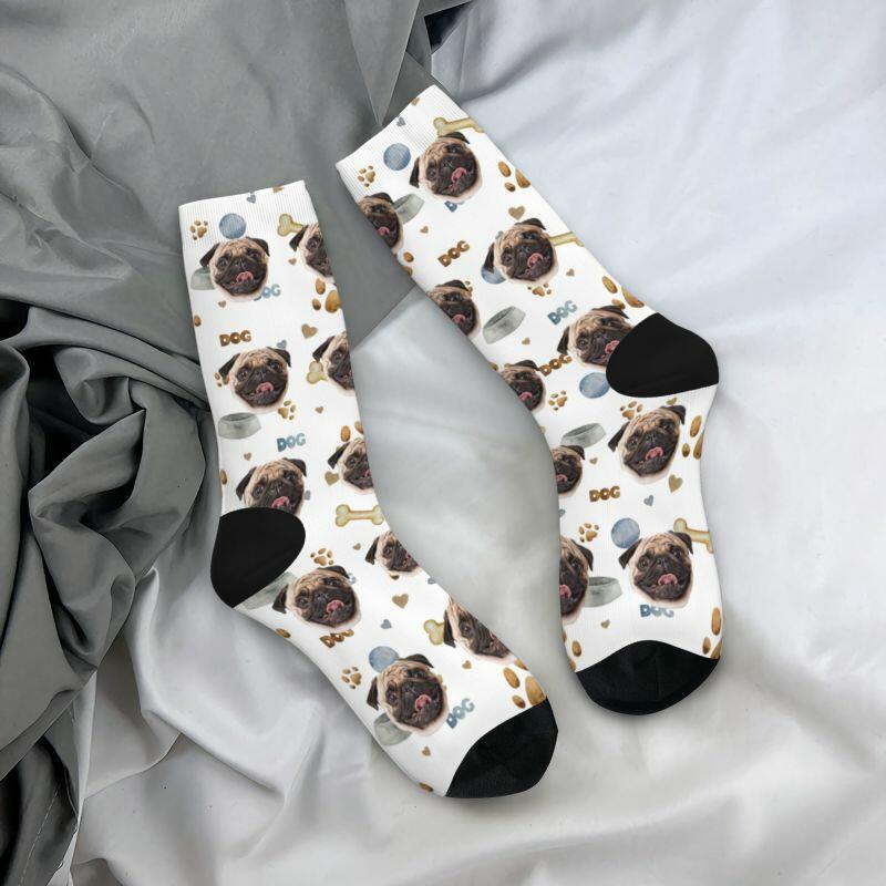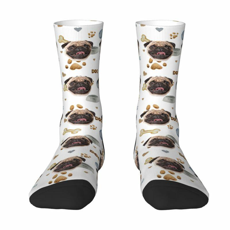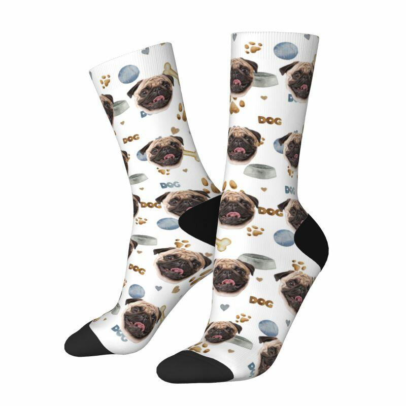 Chaussettes personnalisables à face de chien imprimées avec des articles de chien pour les amoureux des animaux de compagnie