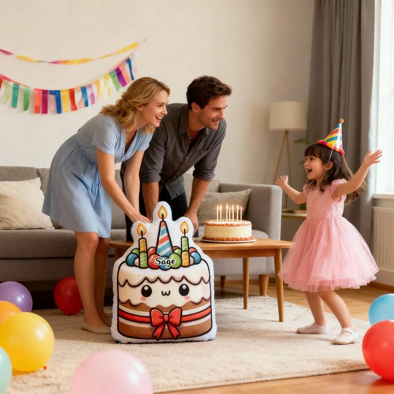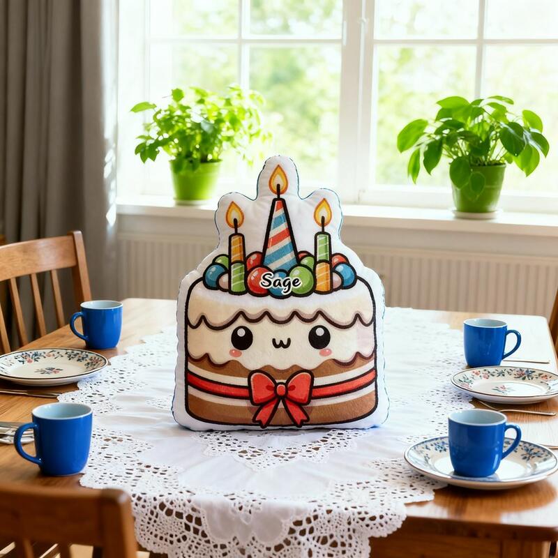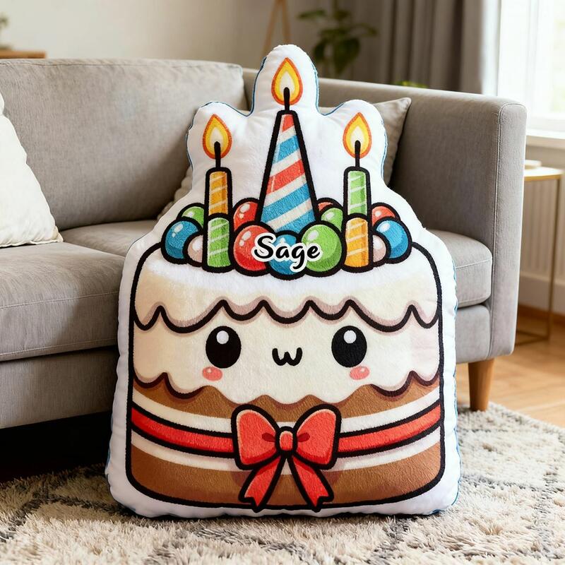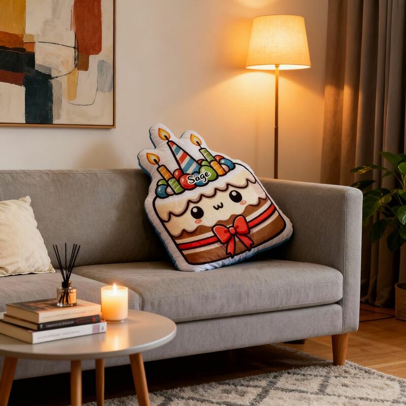 Coussins personnalisés avec motif gâteau d'anniversaire coussins cartoon décorations d'anniversaire confortables pour enfants