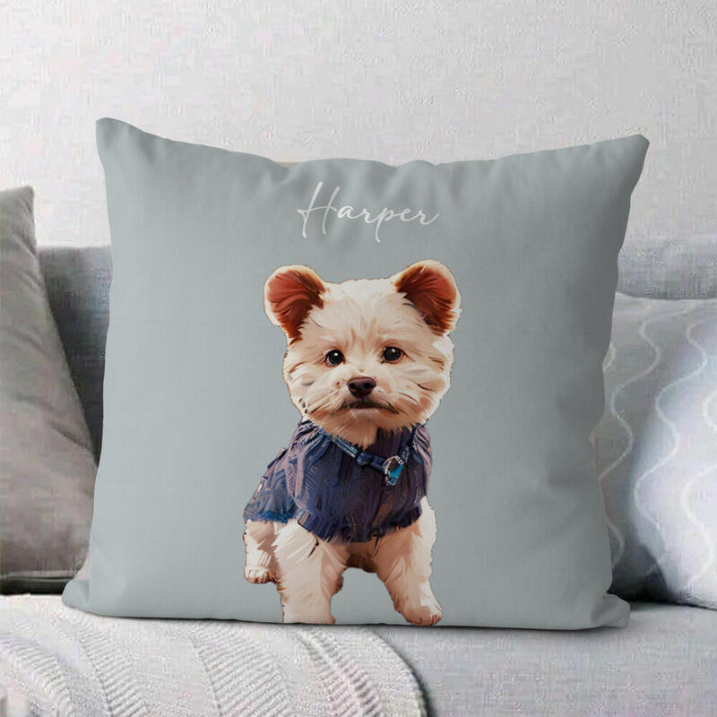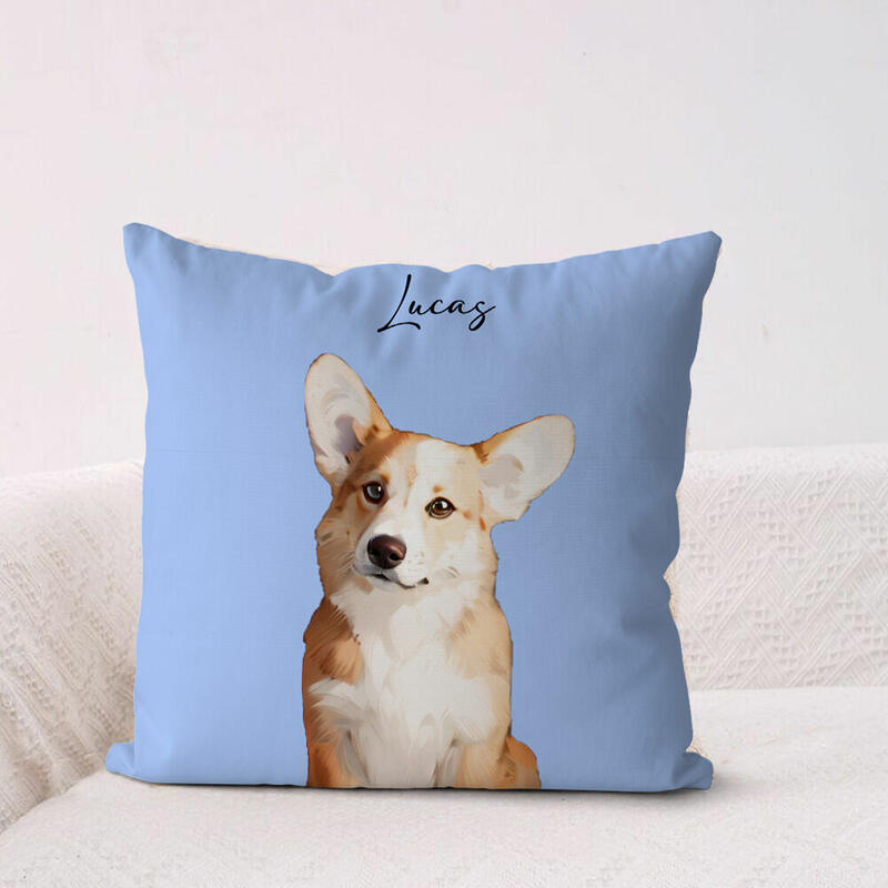 Oreiller personnalisé avec photo d'animal de compagnie à effet aquarelle Décoration d'intérieur mignonne pour les amoureux des animaux de compagnie