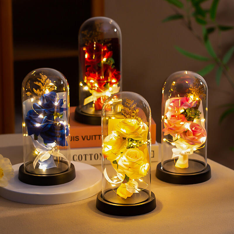 Bouquet de roses éternelles Ornements lumineux Cadeau chaleureux pour la Saint-Valentin