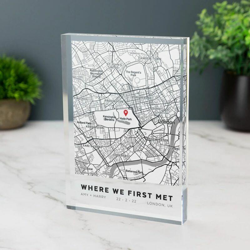 Plaque acrylique personnalisée avec carte personnalisée Emplacement spécial Cadeau d'anniversaire idéal pour les couples