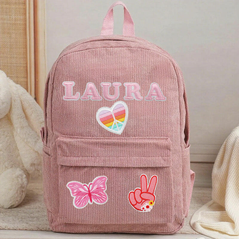 Sac à dos personnalisé avec patch brodé Love Cartoon pour sac d'école pour filles