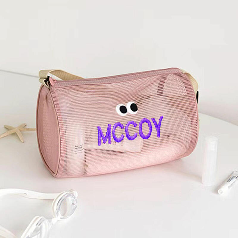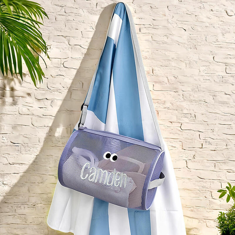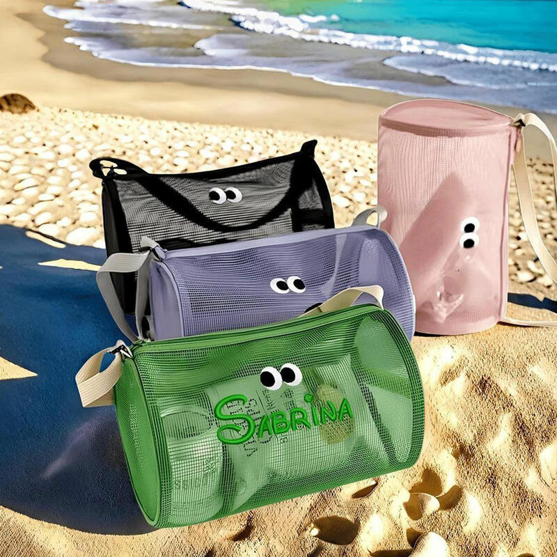 Personalized Beach Grid Bag Custom Name Children's Toy Storage Bag Cylinder Bag for Vacation