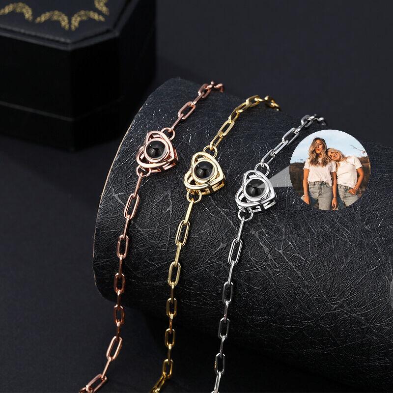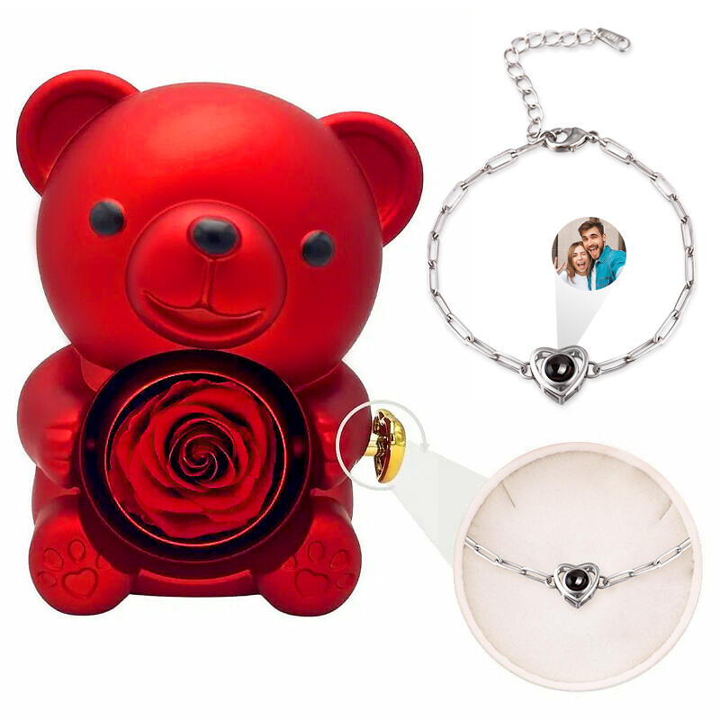 Boîte à bijoux personnalisée pour ours avec bracelet de projection en forme de coeur pour votre cadeau de Noël