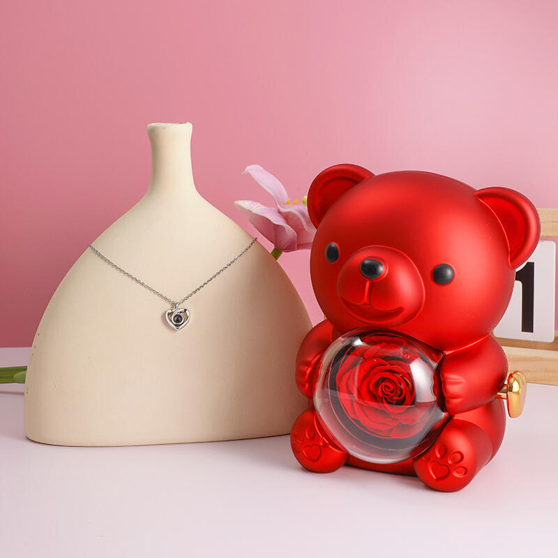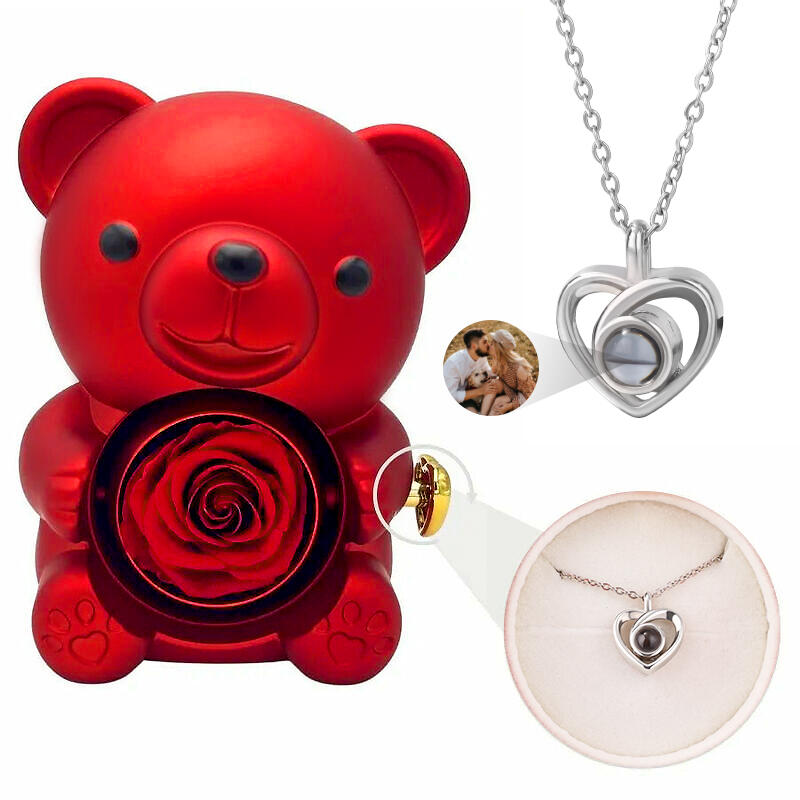 Boîte à Bijoux Ours Personnalisée avec Collier de Projection Coeur Cadeau de St Valentin