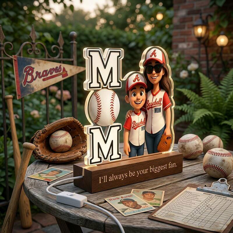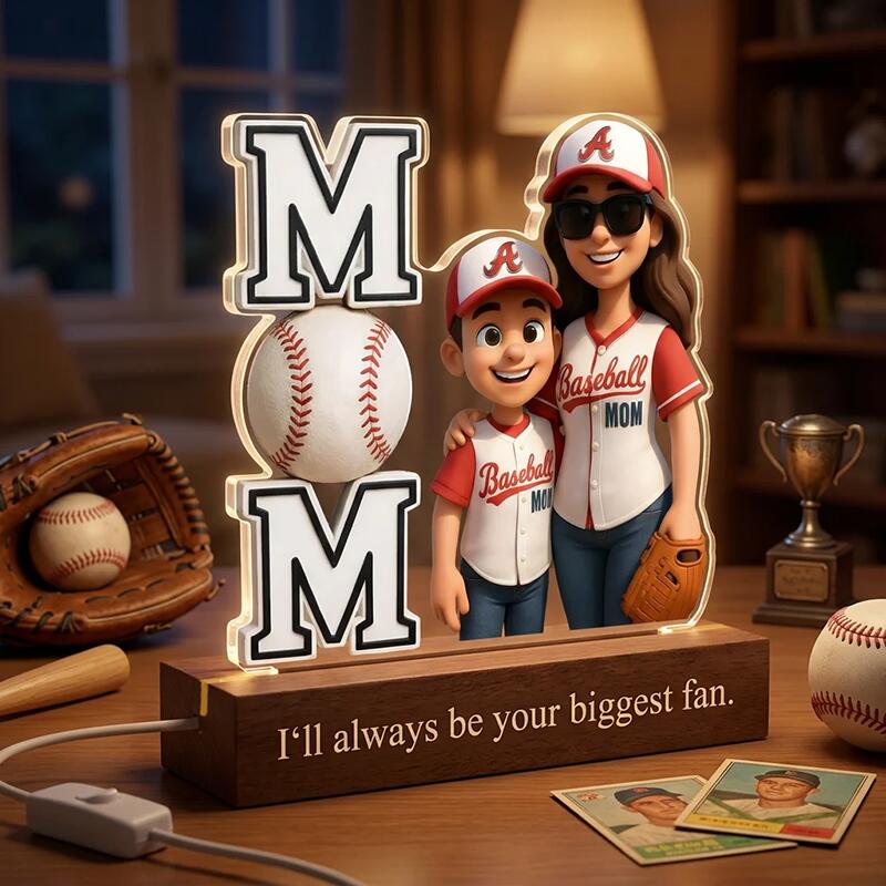 Veilleuse personnalisée avec illustration de bande dessinée et motif de baseball un cadeau sincère pour la fête des Mères