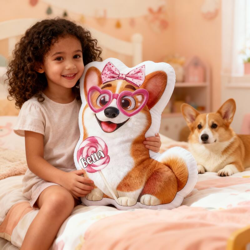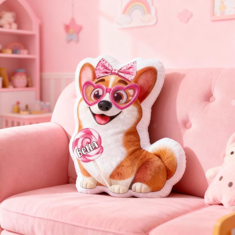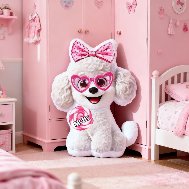 Oreiller personnalisé en forme de personnage de dessin animé motif chiot rose en option cadeau idéal pour les enfants qui aiment les animaux