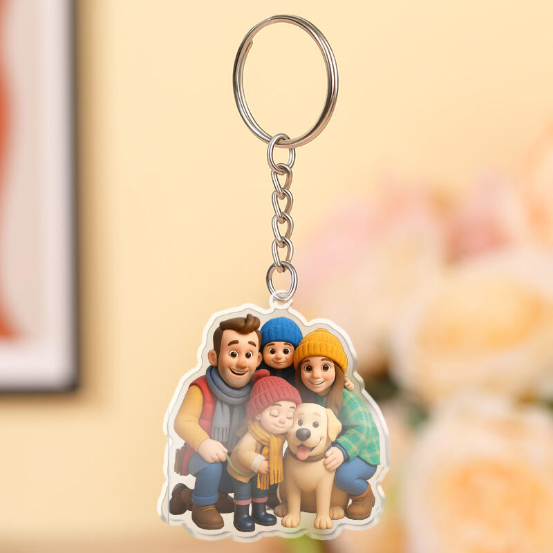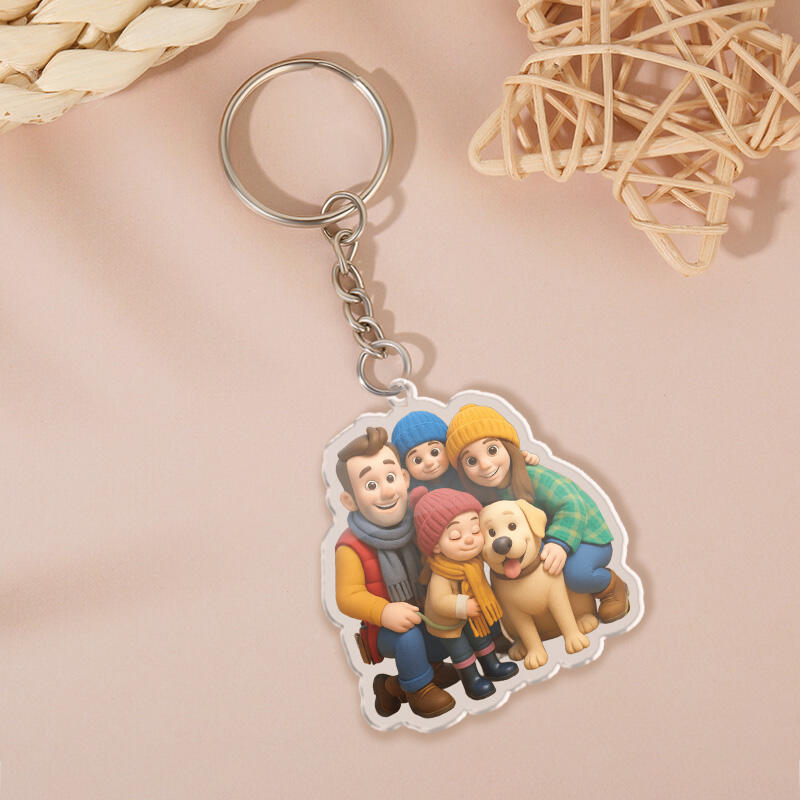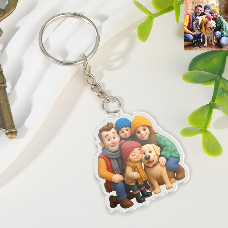 Cadeau personnalisé porte-clés photo de style bande dessinée pour les membres de la famille