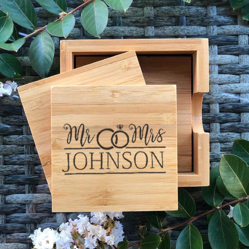 Sous-verre personnalisé avec quatre sous-verres personnalisés et une boîte de rangement Décoration créative en forme d'anneau