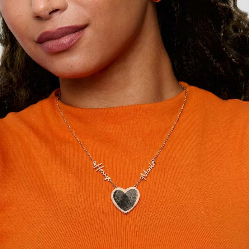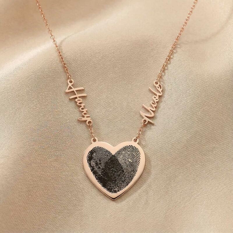 Colliers personnalisés avec les noms du couple et empreintes digitales en forme de cœur personnalisables un cadeau adorable pour la Saint-Valentin