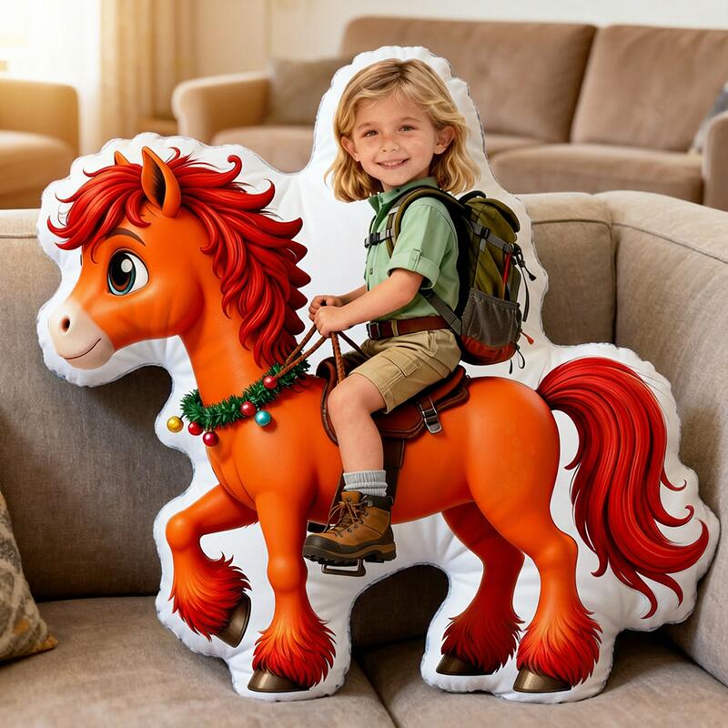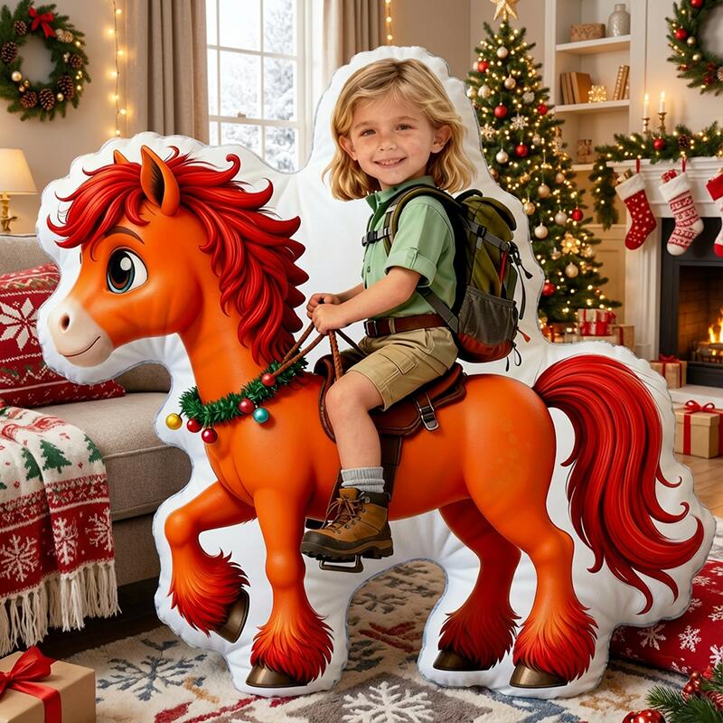 Personalized Face Portrait Pillow with Horse Pattern Interesting Gift for Girl
