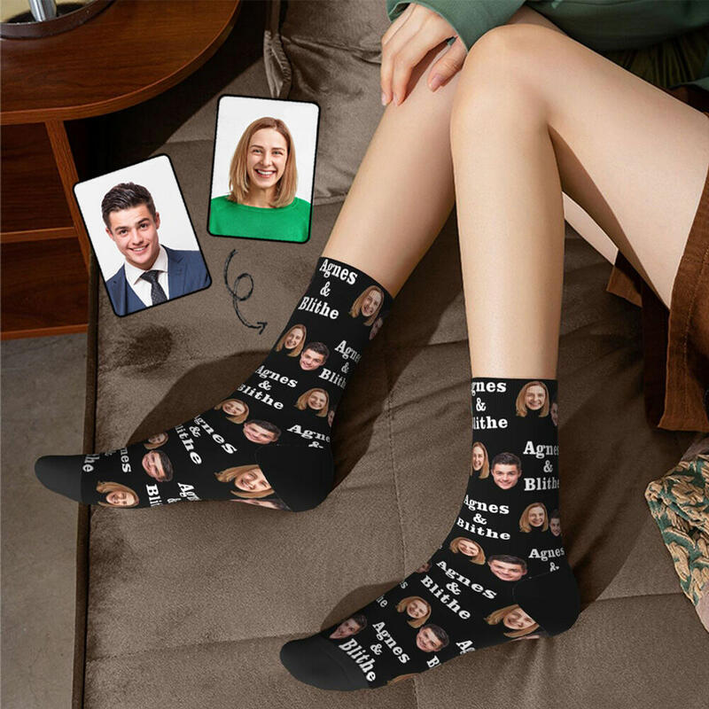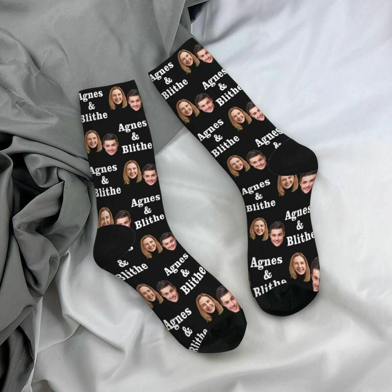 Chaussettes à Visage Personnalisé avec Photos et Texte pour Cadeau de Couple
