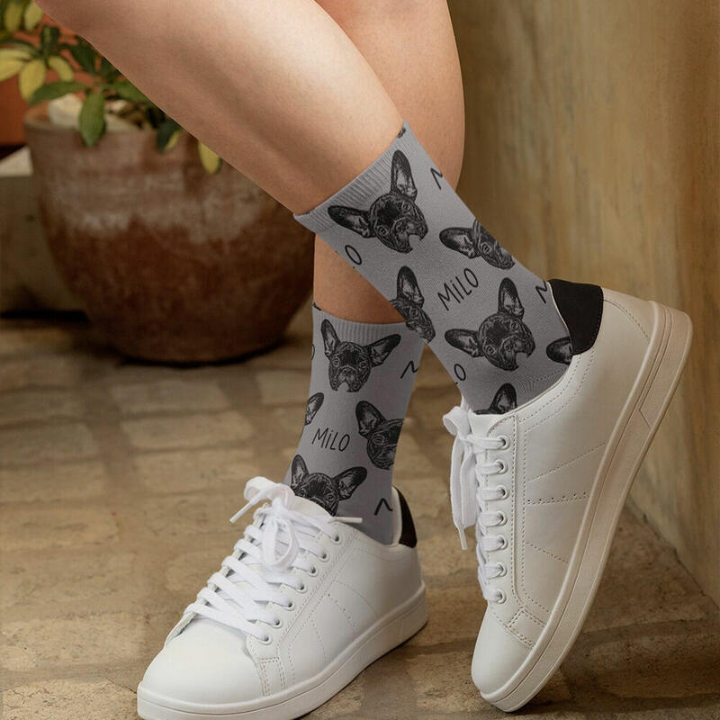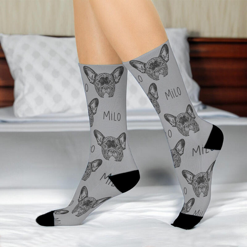 Chaussettes à Visage Personnalisé Photo Croquis d'Animal de Compagnie Chaussettes Motivantes pour les Amoureux des Animaux de Compagnie