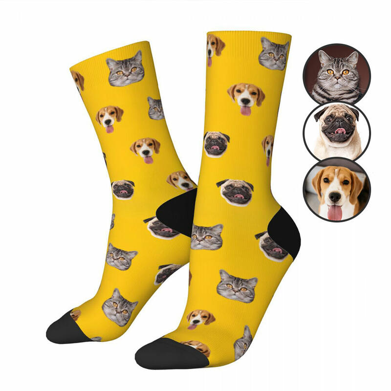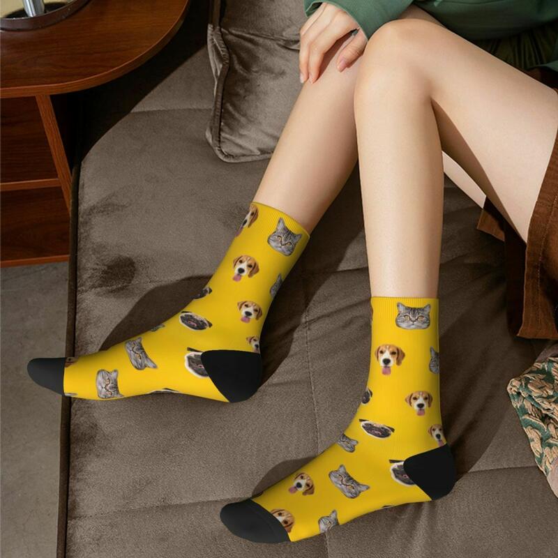 Chaussettes personnalisées avec plusieurs photos d'animaux de compagnie Chaussettes drôles à mi-mollet