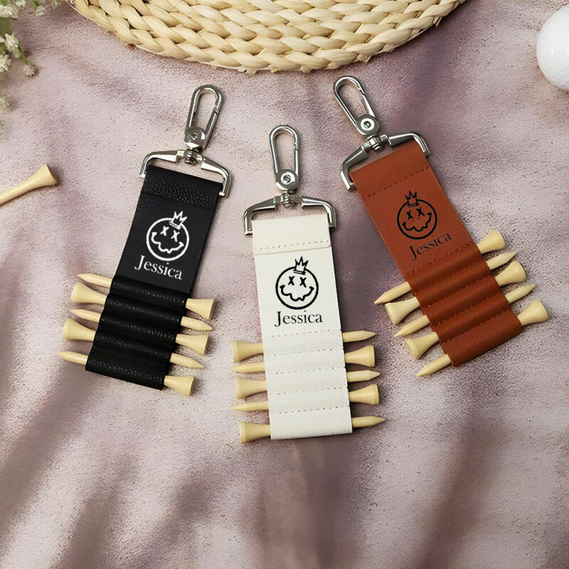 Sac porte-tee de golf personnalisé avec une étiquette de tee de golf en forme de smiley, cadeau d'anniversaire pour homme