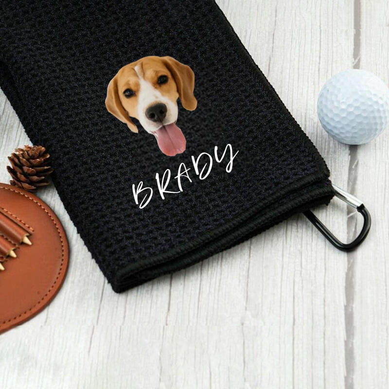 Serviette de golf personnalisée avec photo et nom de l'animal pour les cadeaux d'anniversaire des propriétaires d'animaux de compagnie