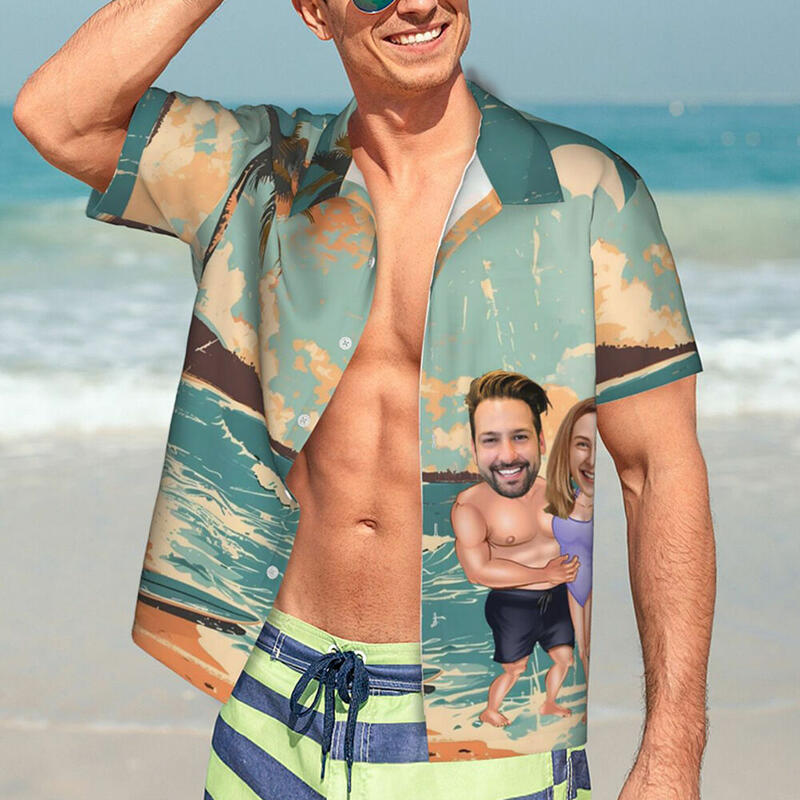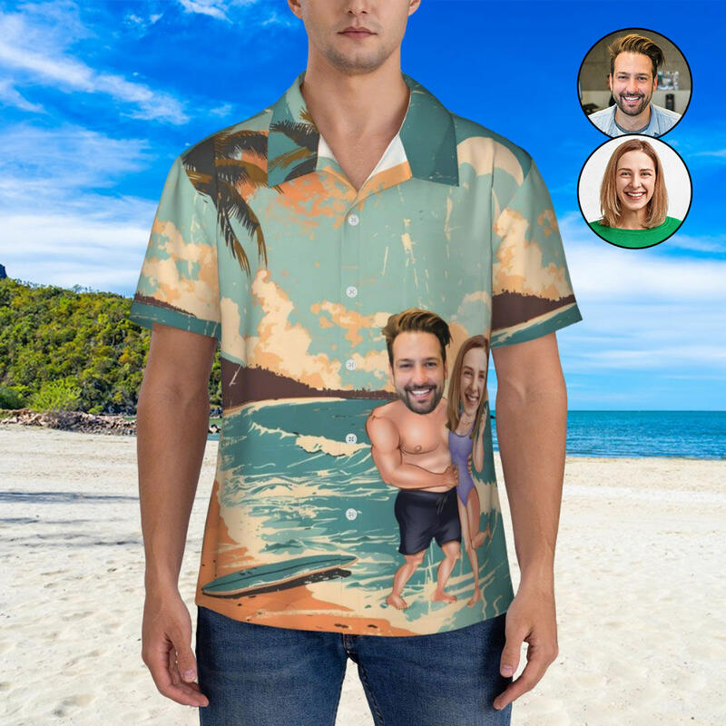 Chemises hawaïennes personnalisées avec photos personnalisées Chemises style peinture à l'huile pour la Saint Valentin