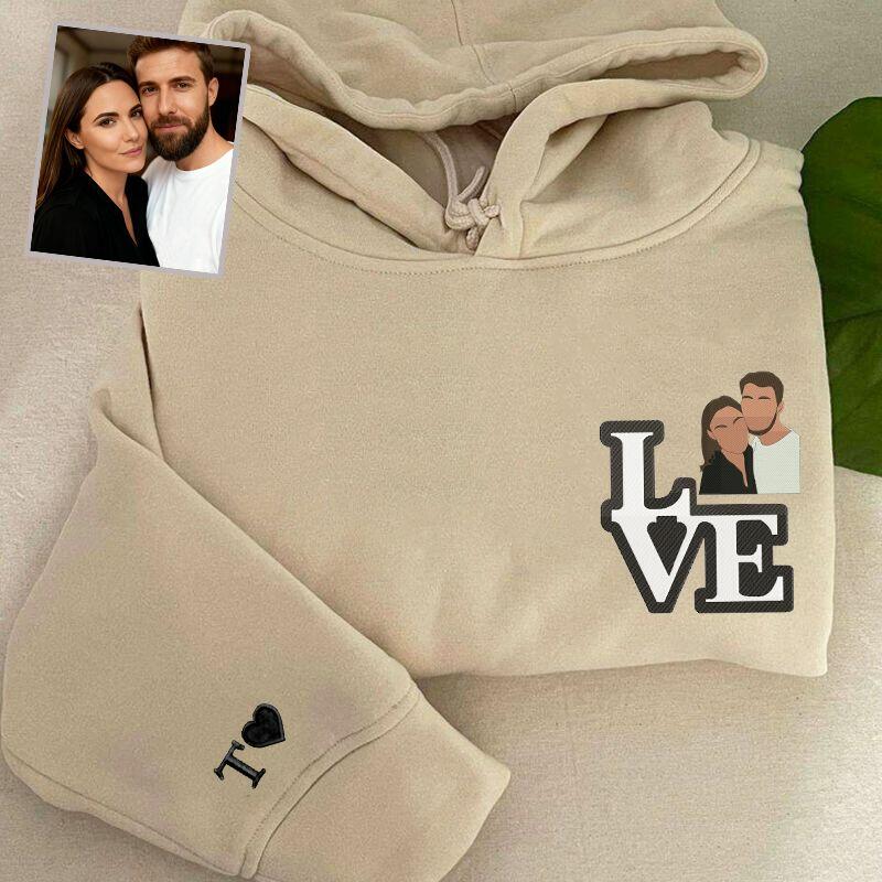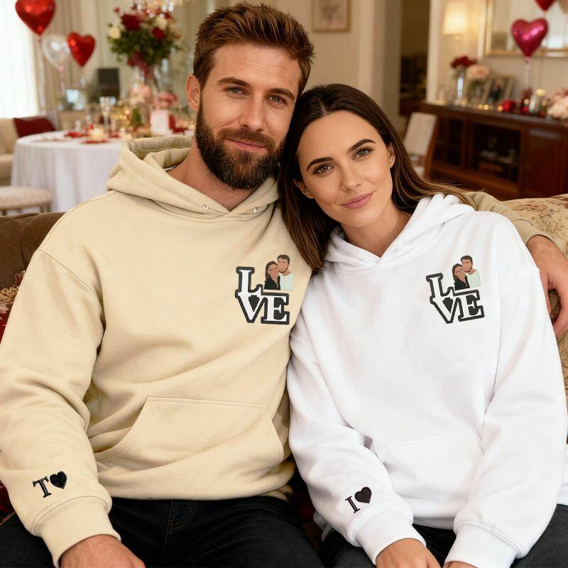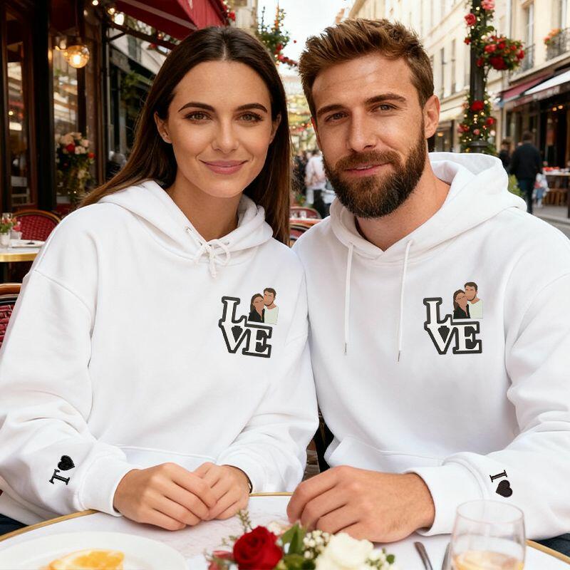 Sweat à capuche personnalisé brodé avec un motif photo de couple cadeau de Saint-Valentin pour les amoureux