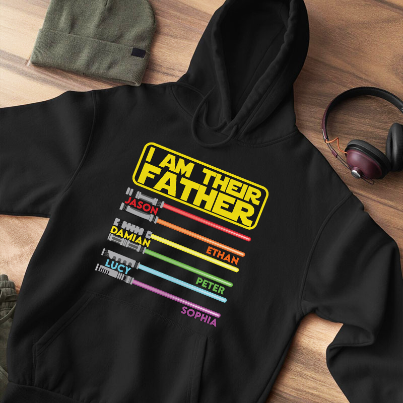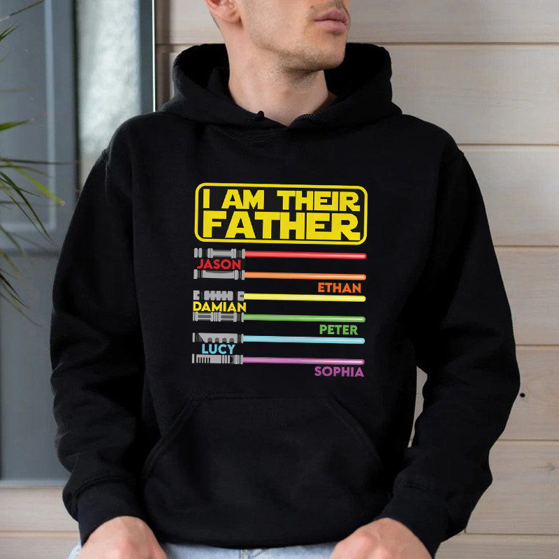 Sweat à capuche personnalisé Je suis leur père motif sabre laser design noms personnalisés cadeau attractif pour cher papa