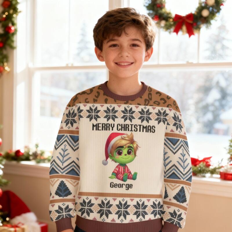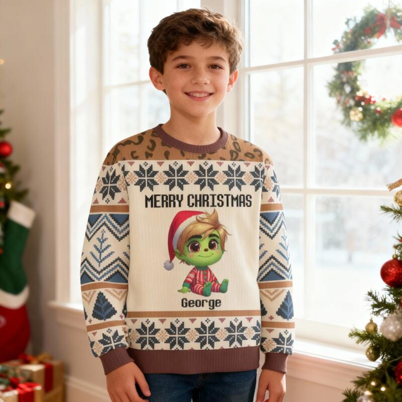 Pull moche personnalisé pour enfants unisexe avec motif cartoon pour bébé cadeau de Noël pour les enfants