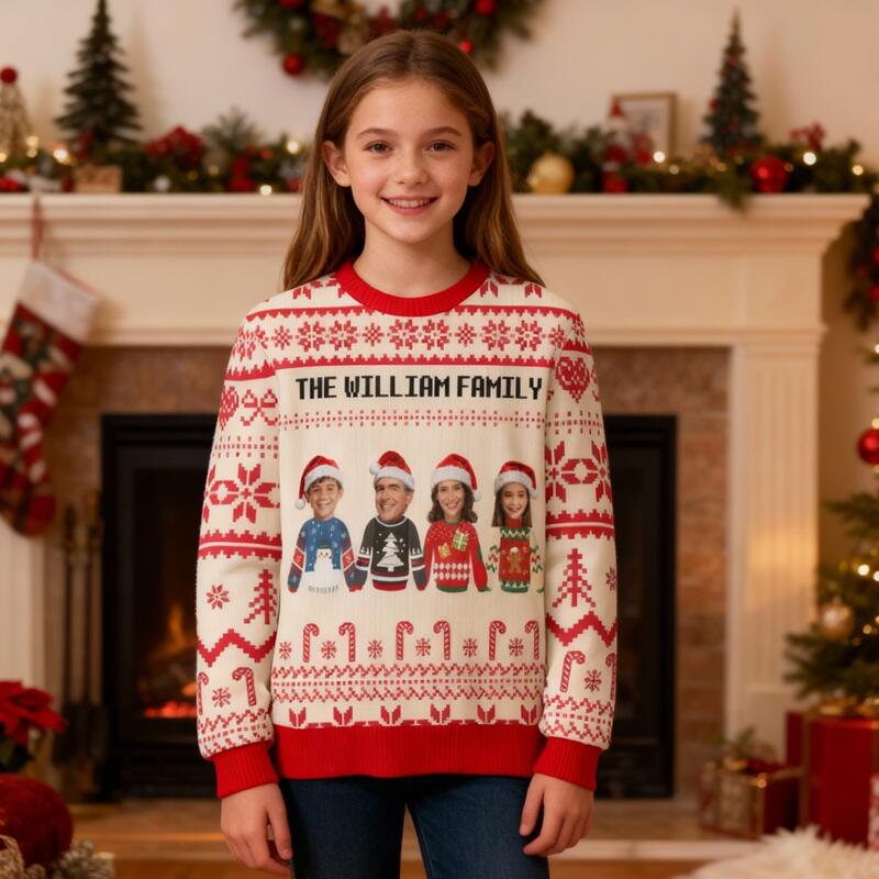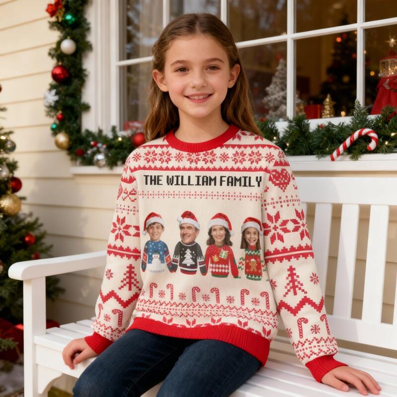 Pull moche personnalisé pour enfants unisexe avec photo de famille pull de Noël au design créatif cadeau