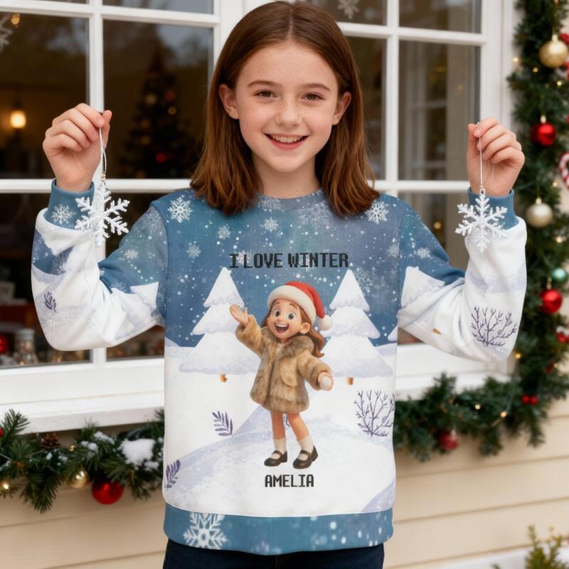 Pull moche personnalisé pour enfants unisexe avec photo personnalisée style cartoon adorable cadeau de Noël pour elle