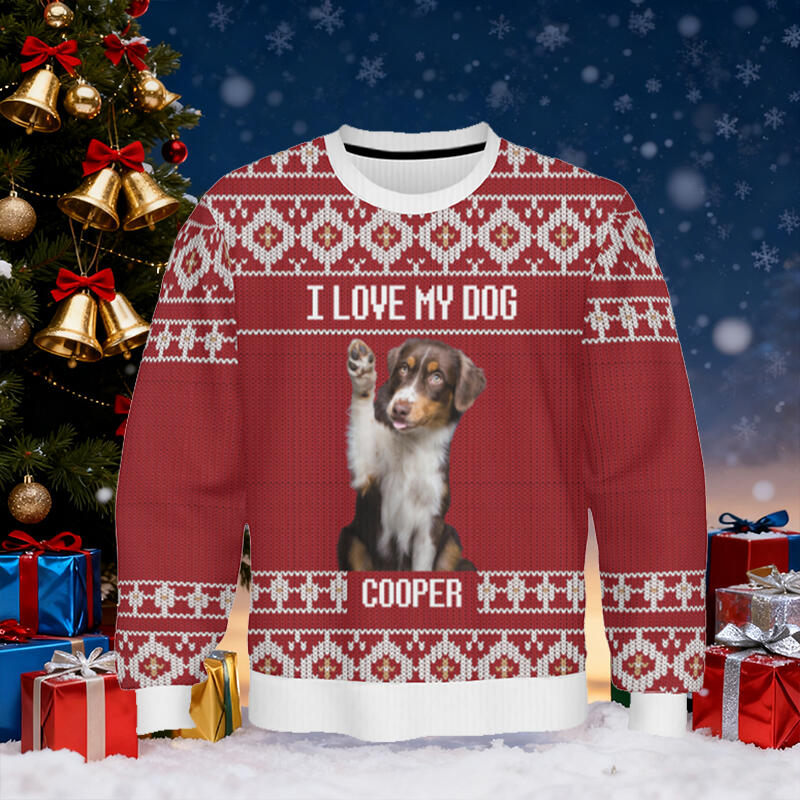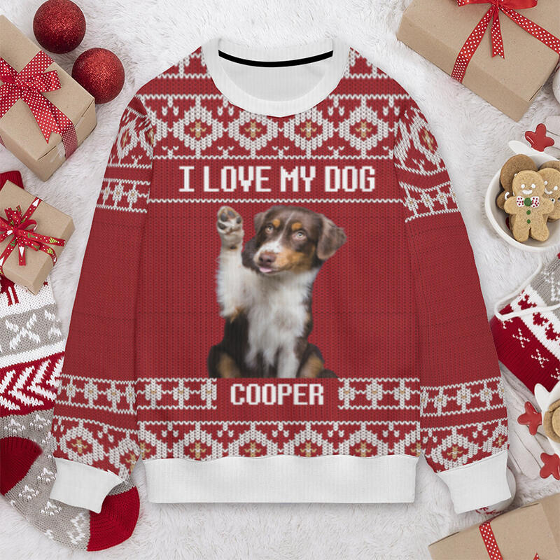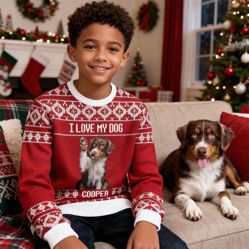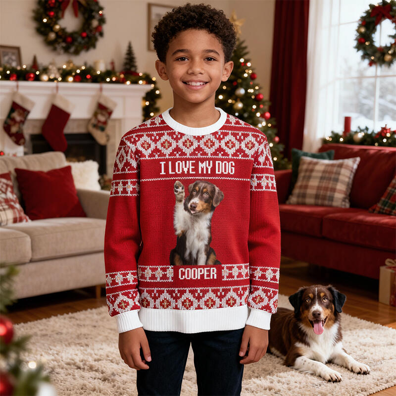 Pull moche personnalisé pour enfants unisexe avec photo personnalisée motif festif cadeau de Noël pour les enfants qui aiment les animaux