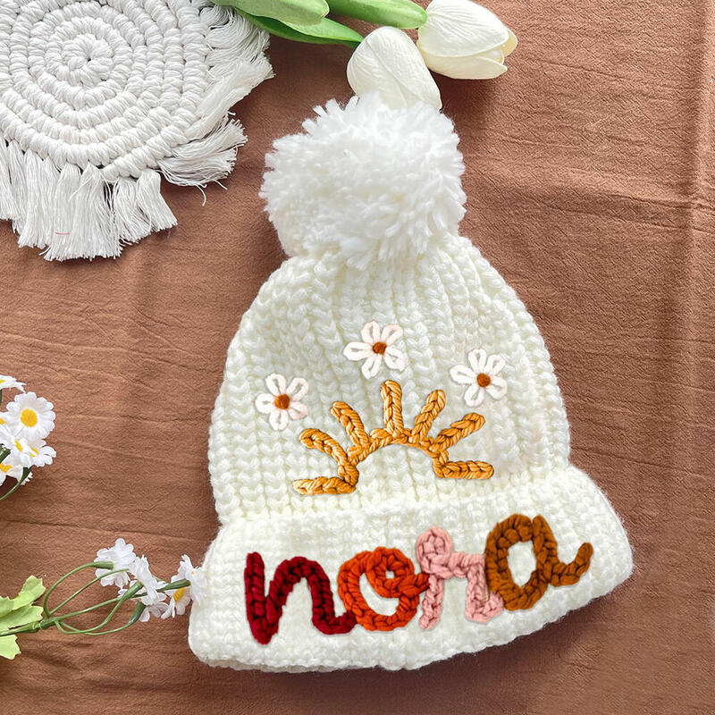 Bonnet d'hiver brodé personnalisé en tricot à pompon pour tout-petits pour enfants