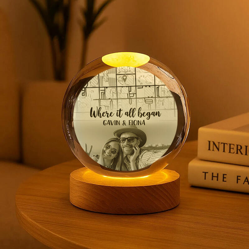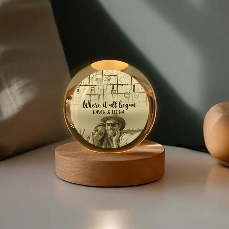 Veilleuse boule de cristal personnalisée avec carte et photo personnalisée cadeau original pour les couples