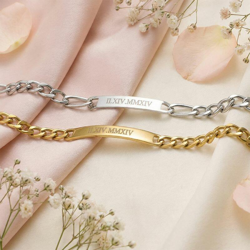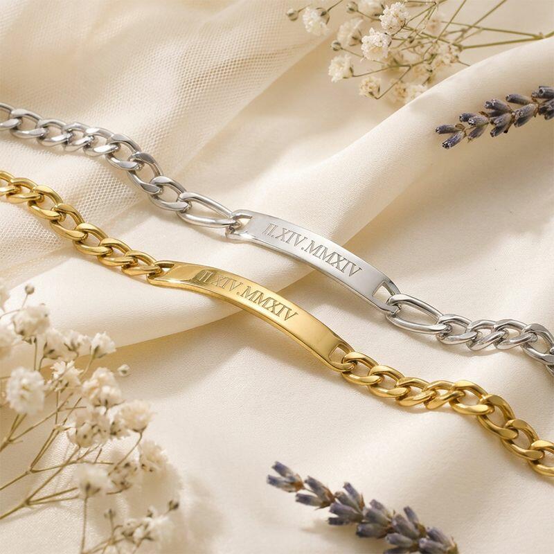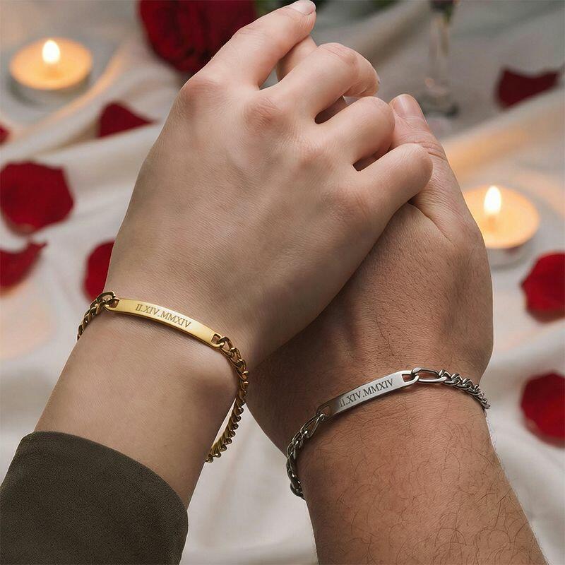 Bracelets gravés assortis personnalisés Dates en chiffres romains personnalisées Cadeau d'anniversaire unique
