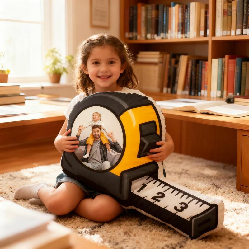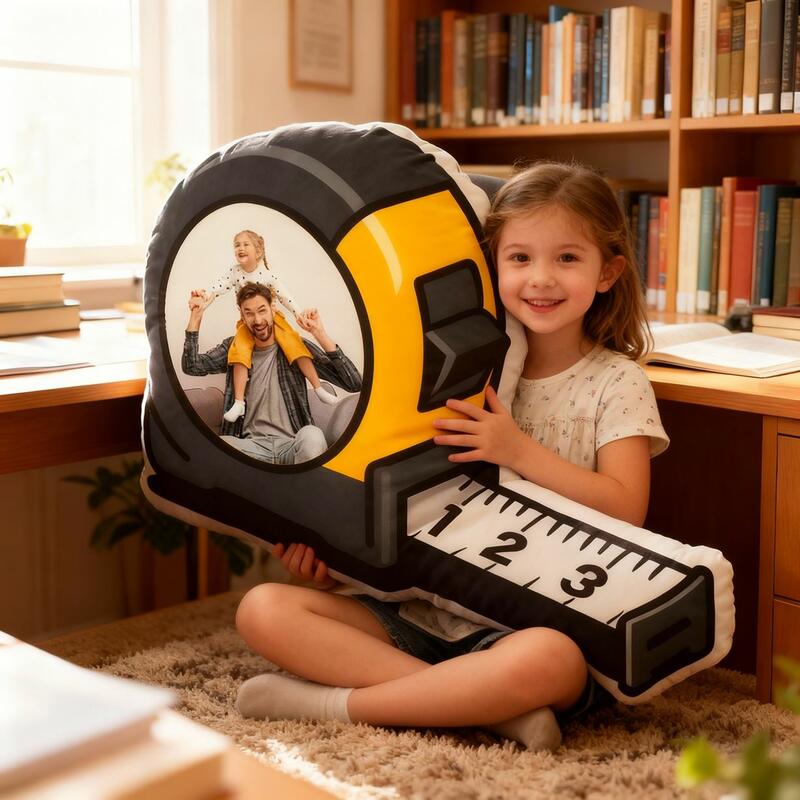Oreiller en peluche personnalisé sur le thème de la photo avec ruban à mesurer pour enfants