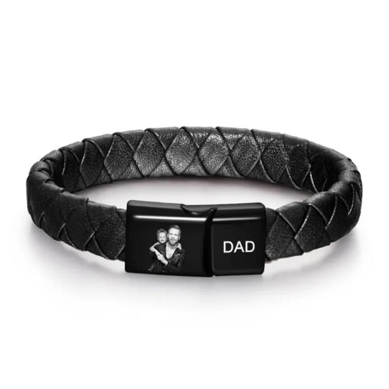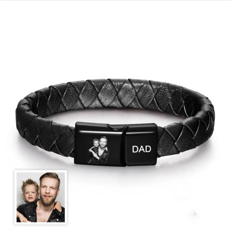 Bracelet en cuir personnalisé pour homme avec photo personnalisée Cadeau de Noël pour papa