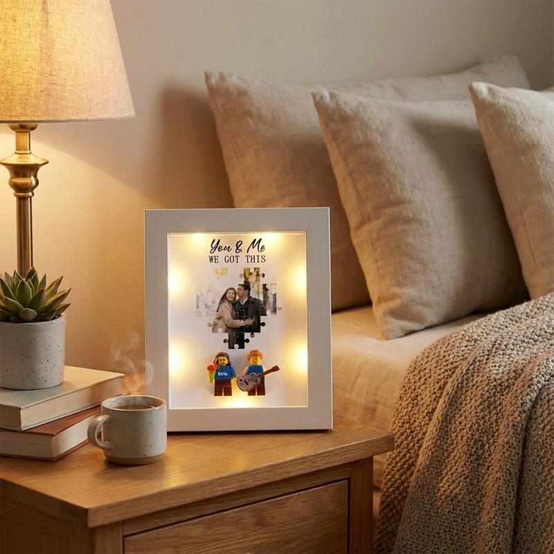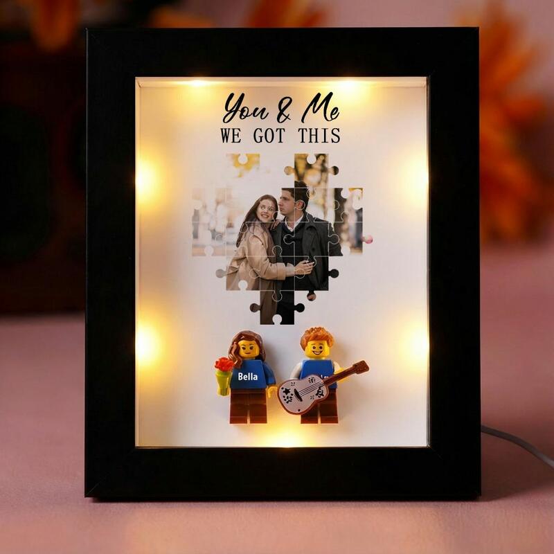 Cadre photo LED personnalisé avec mini-figurine et photo personnalisée Cadeau original pour les couples