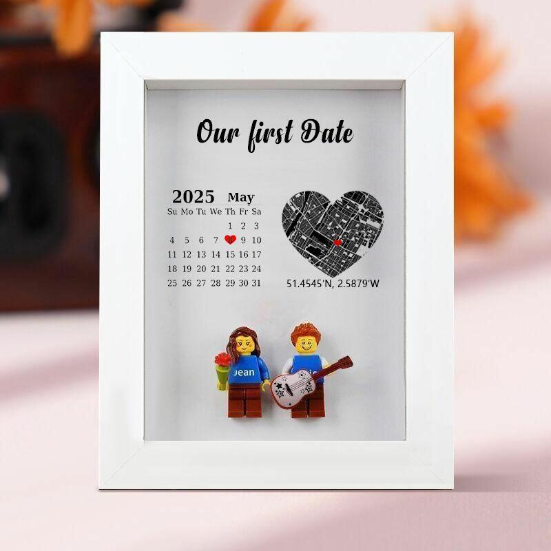 Cadres photo personnalisés avec figurines cartes en forme de cœur personnalisées et thème des dates des cadeaux d'anniversaire romantiques