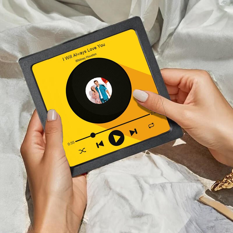 Magnet frigo musique personnalisé avec image et fond jaune Beau cadeau pour votre amour