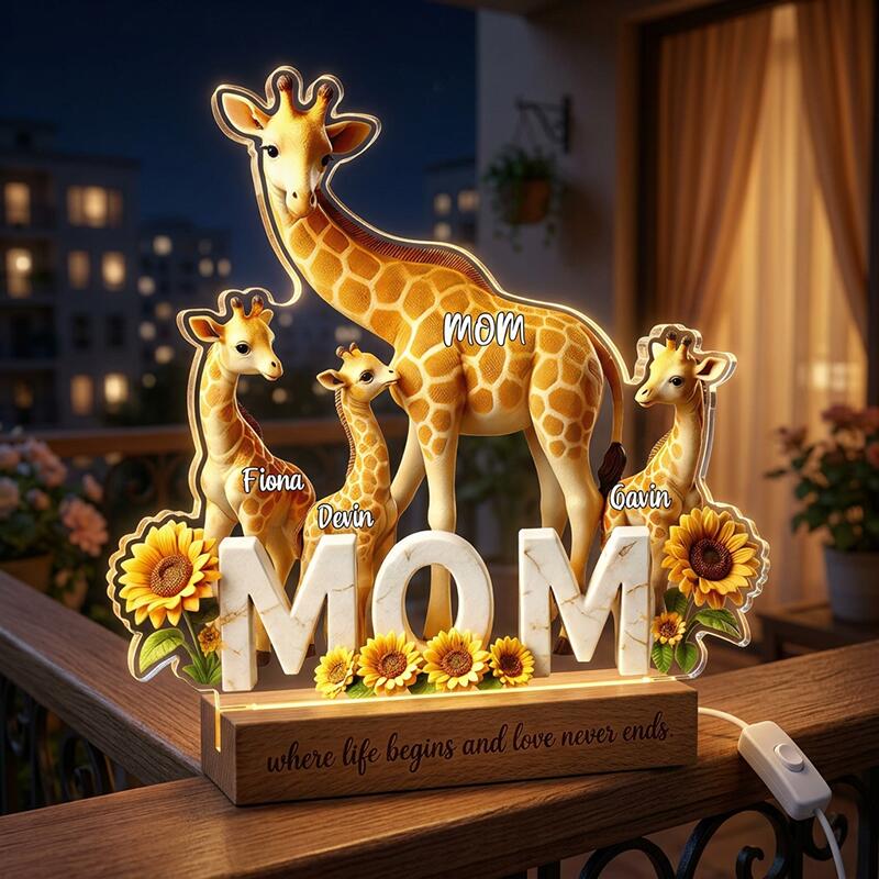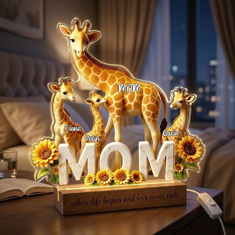Veilleuse personnalisée avec nom et motif girafe cadeau plein d'amour pour maman