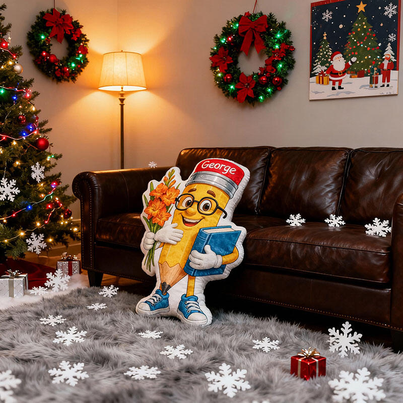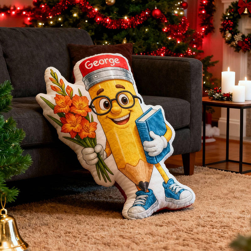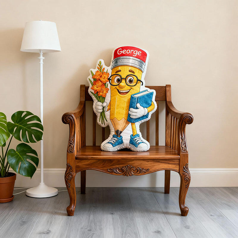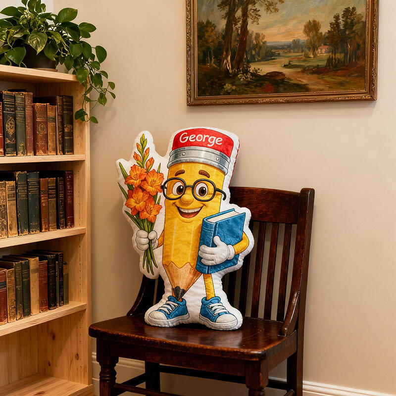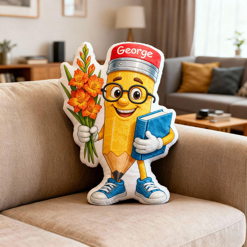 Oreiller personnalisé avec motif crayon de dessin animé cadeau créatif pour enseignant