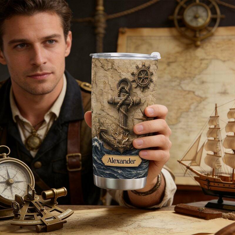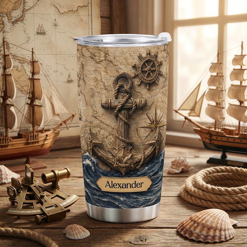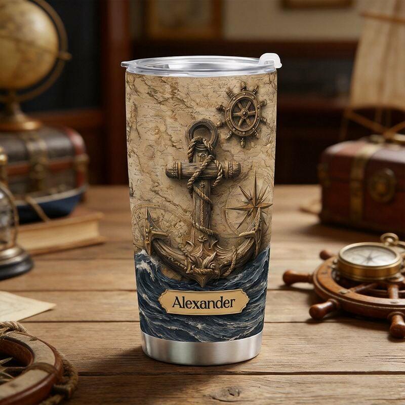 Gobelet personnalisé avec prénom et motif ancre cadeau sympa pour les amis