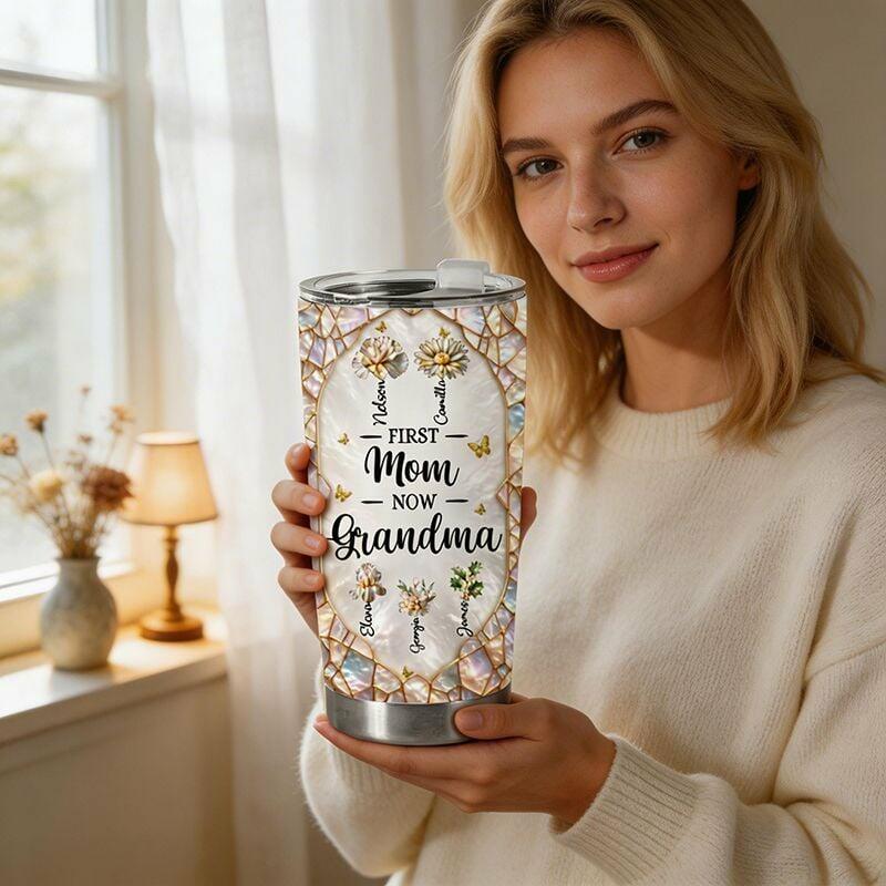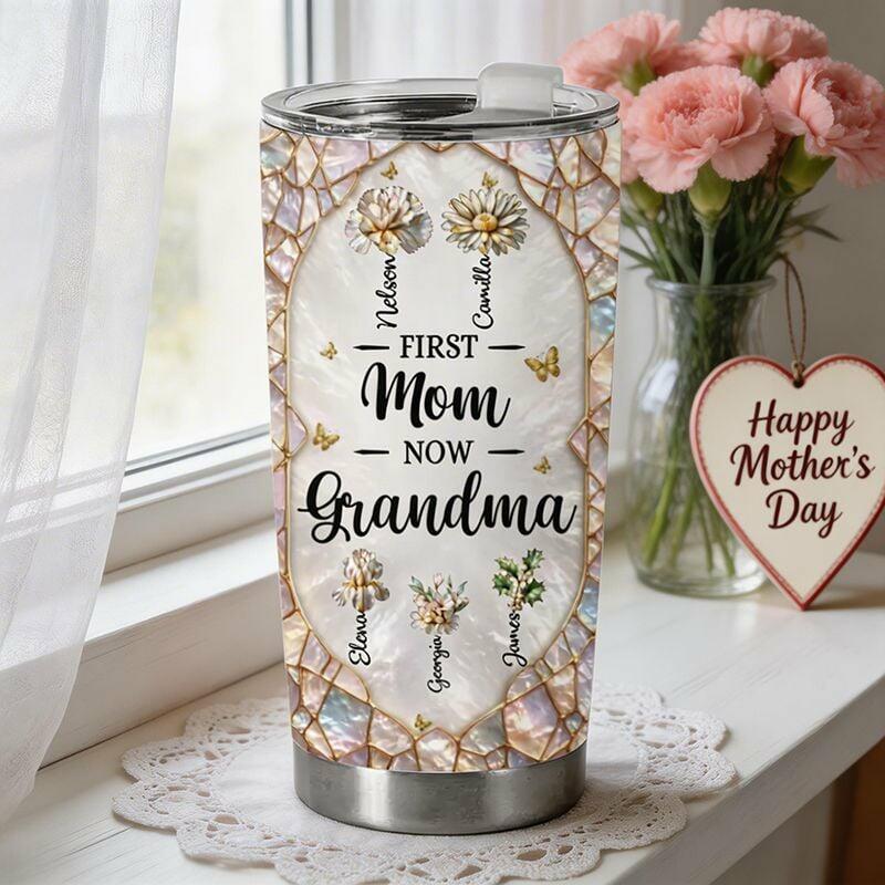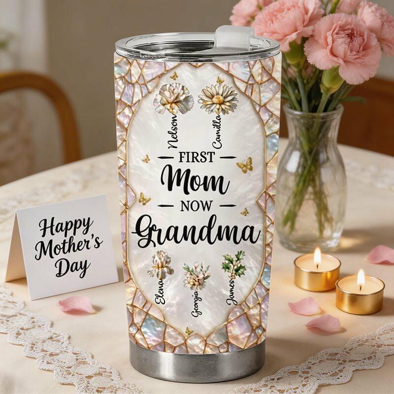 Gobelet personnalisé avec fleurs de naissance et grille colorée Cadeau merveilleux pour la fête des mères