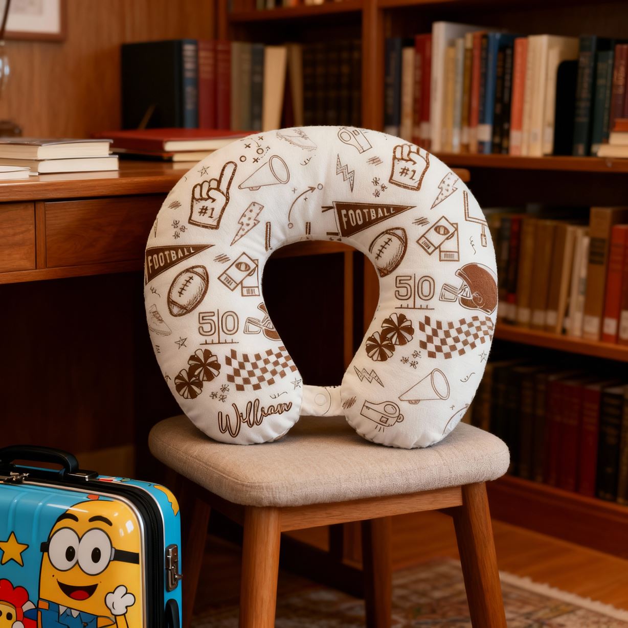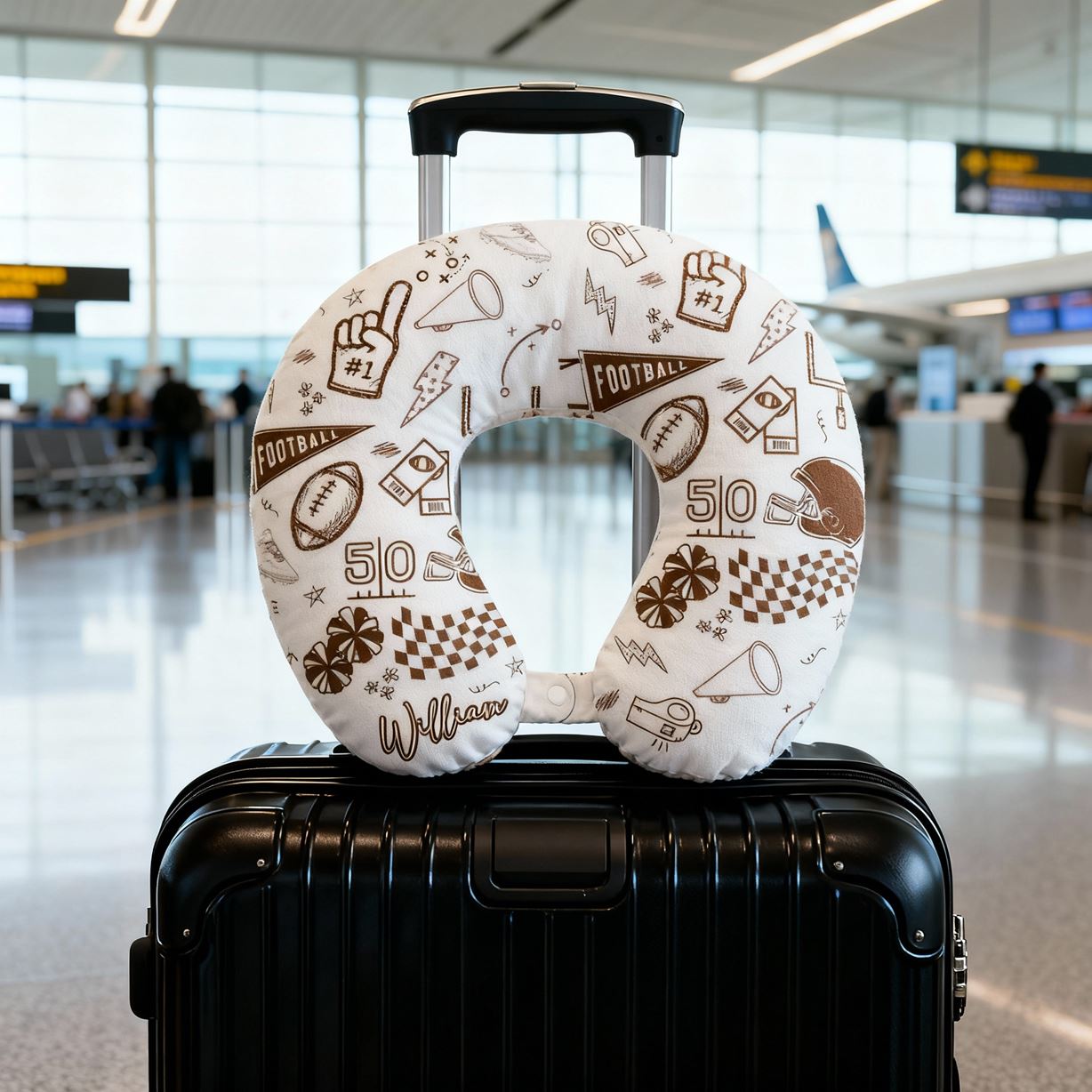 Oreiller en forme de U personnalisé avec nom imprimé sportif oreiller de voyage portable pour les amateurs de sport