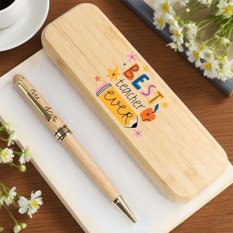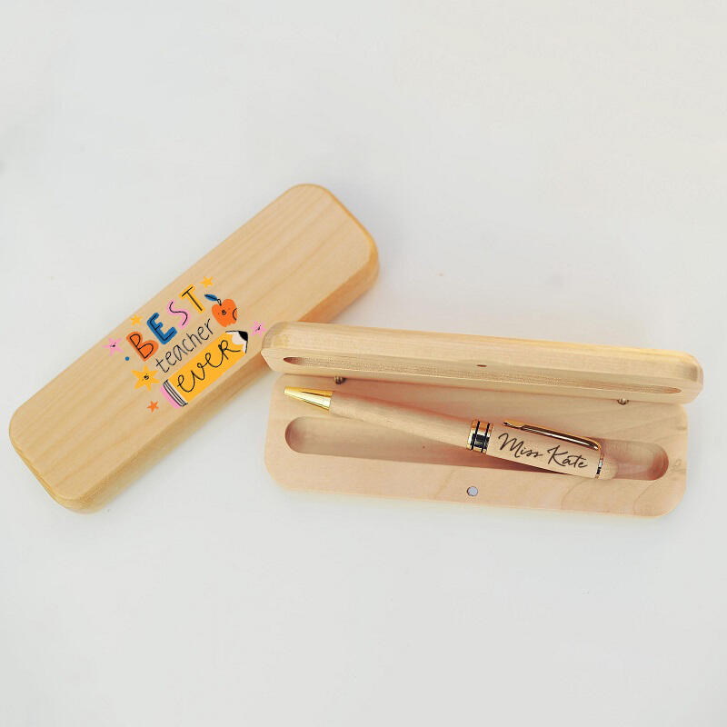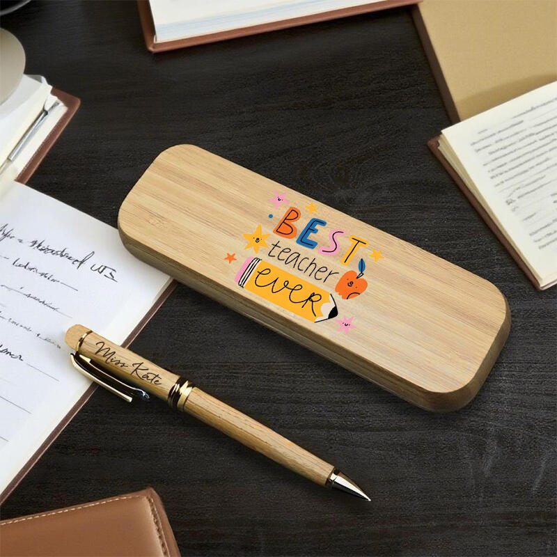 Boîte en bois personnalisée pour stylos avec motif crayon pomme cadeau amusant pour les enseignants