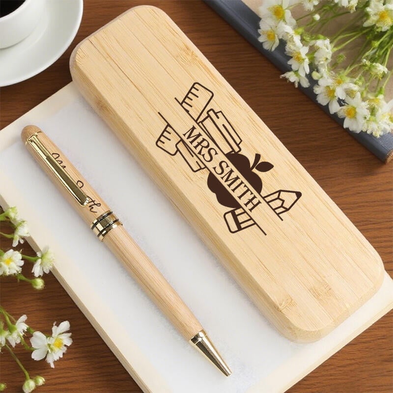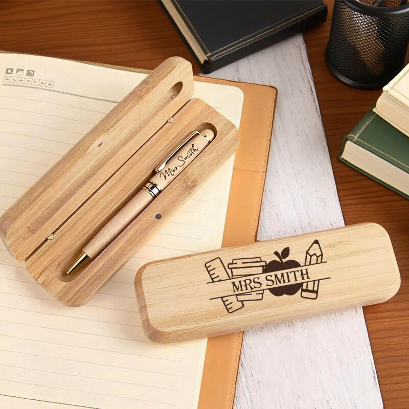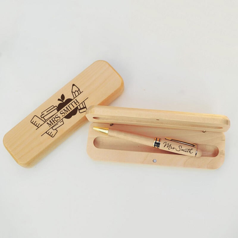 Boîte en bois personnalisée pour stylos nom personnalisé motif crayon et pomme cadeau idéal pour les enseignants