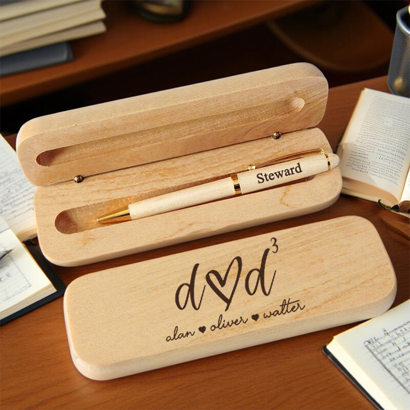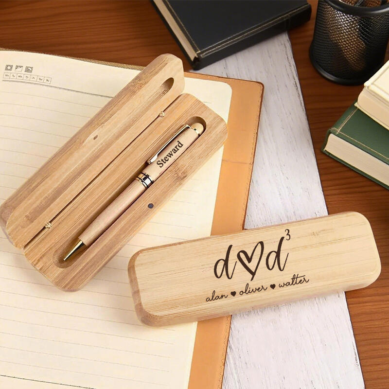 Boîte en bois personnalisée pour stylo avec cœur papa et noms personnalisés des enfants Cadeau attrayant pour la fête des pères