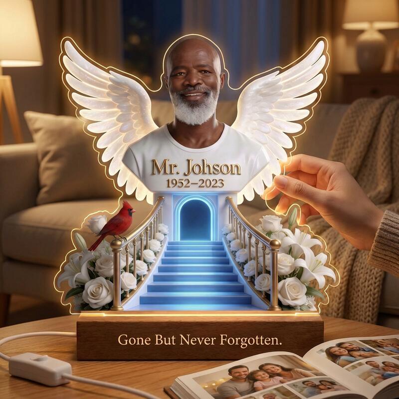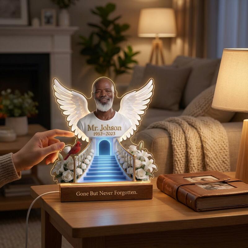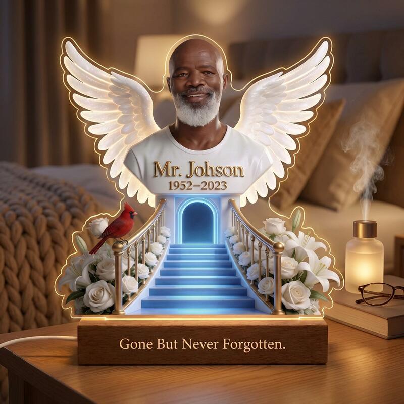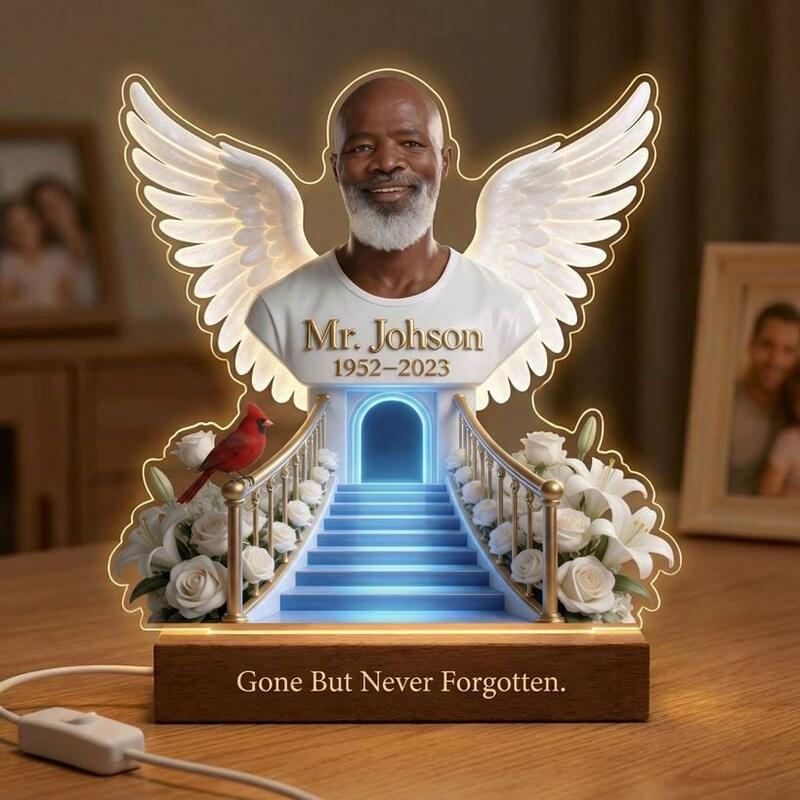 Veilleuse personnalisée avec photo escalier ciel et ailes Cadeau commémoratif pour une famille en deuil