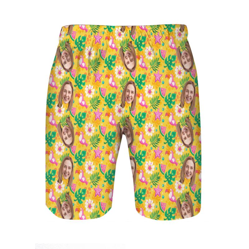 Shorts de plage personnalisé avec motif d'oiseaux roses Cadeau créatif pour la famille
